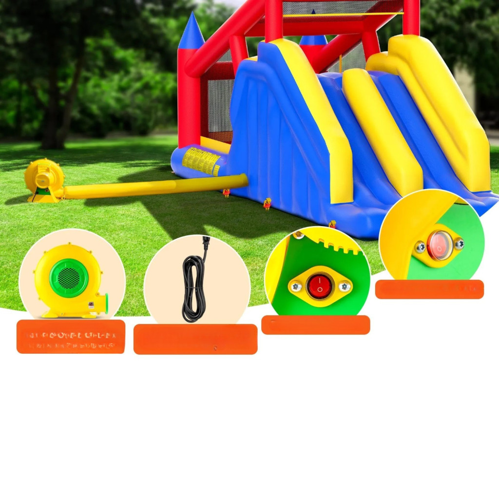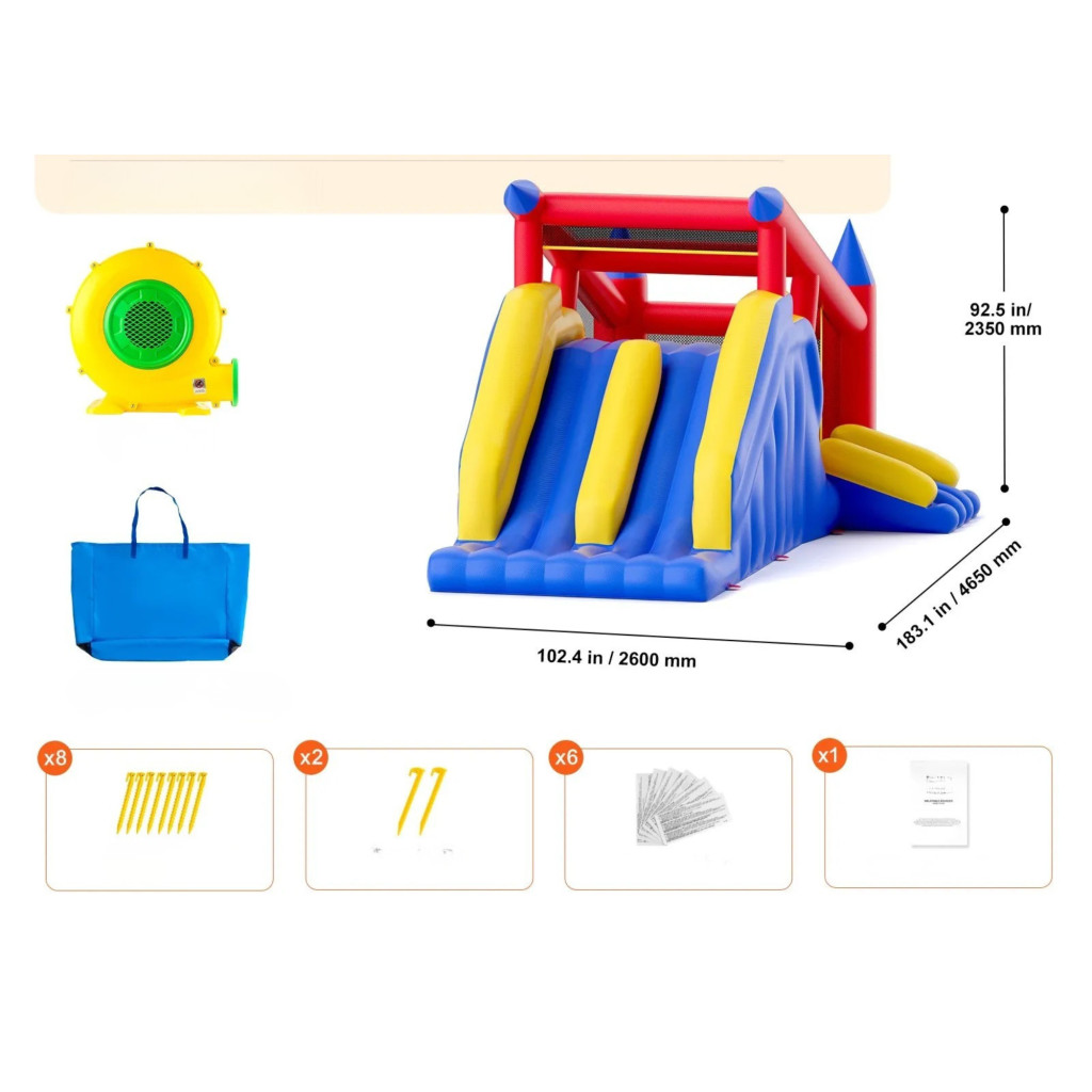 Felfújható ugrálóvár kültéri játszóház 465x260x235 cm légvár dupla csúszdával
