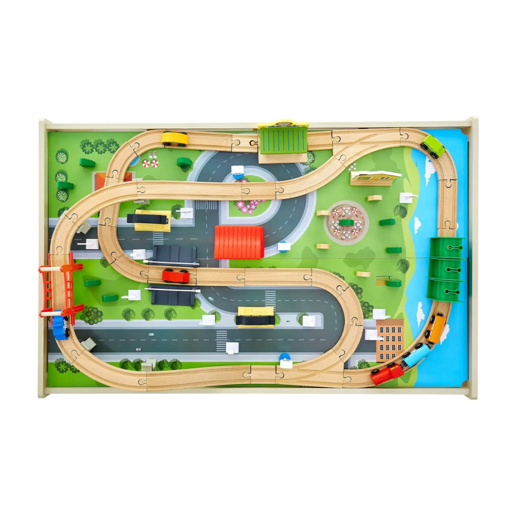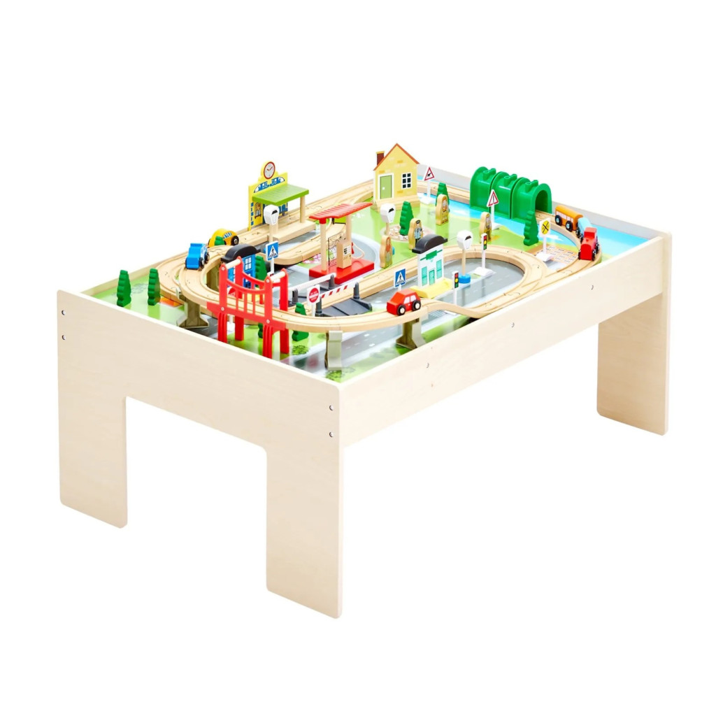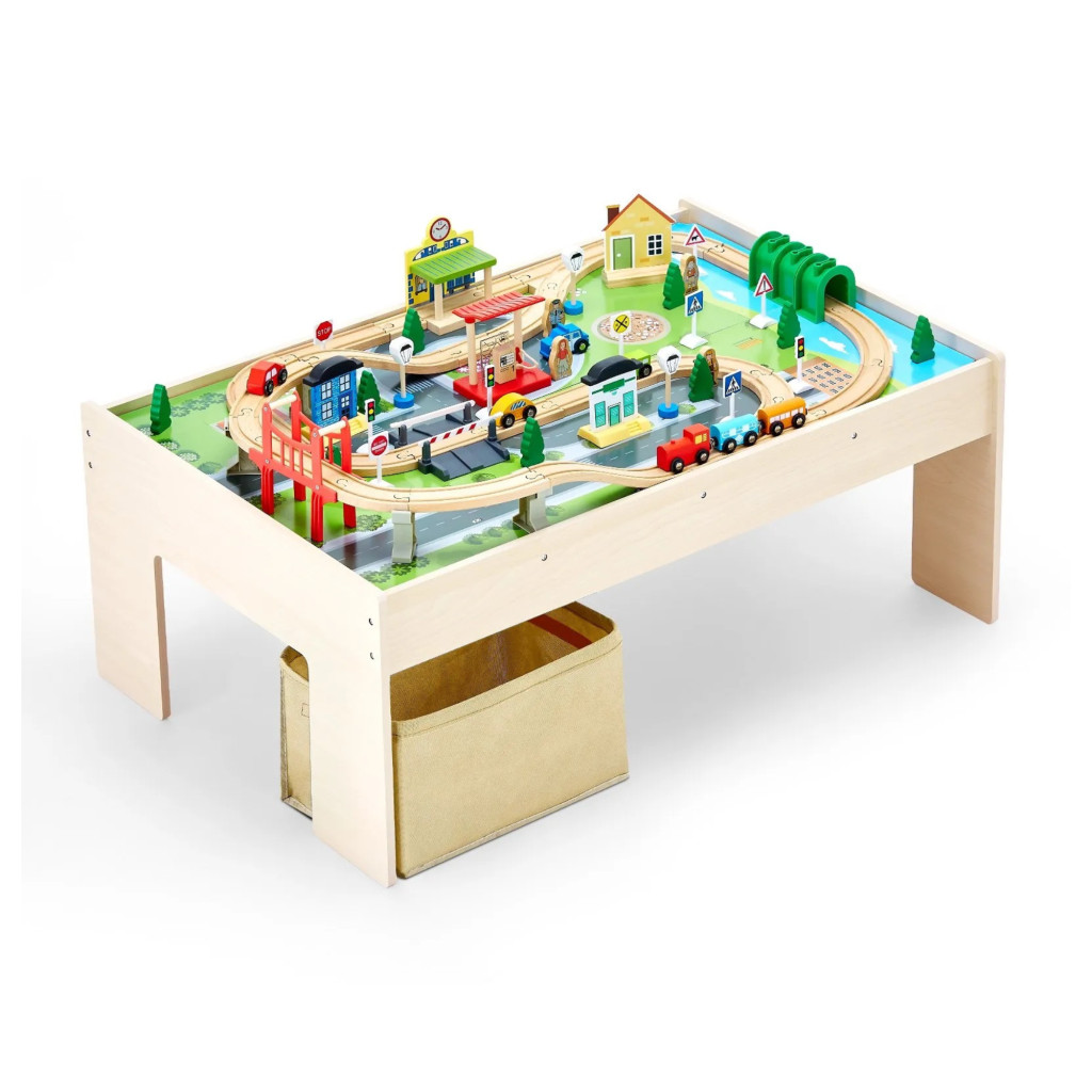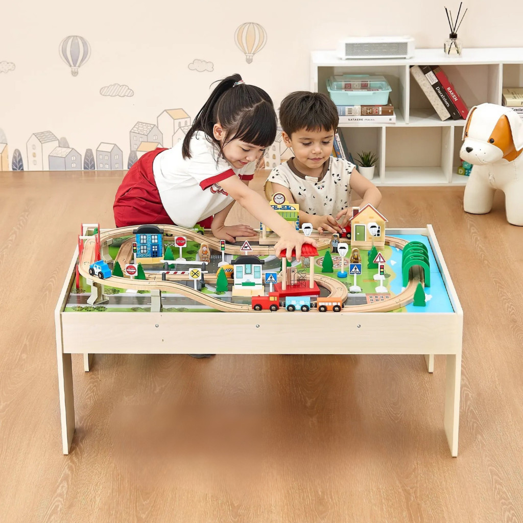 Fa gyerek játékasztal 3 az 1-ben vasút játékasztal 84 részes szettel