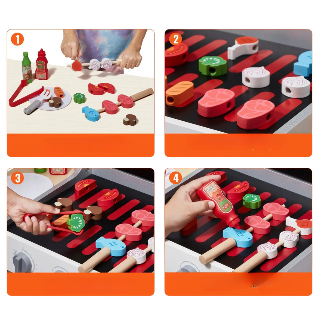 Ez a gyerek BBQ grill játék lehetővé teszi, hogy gyermeke: