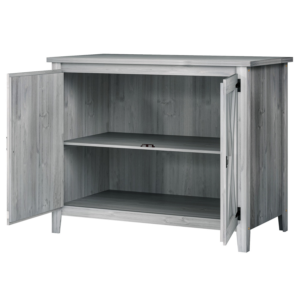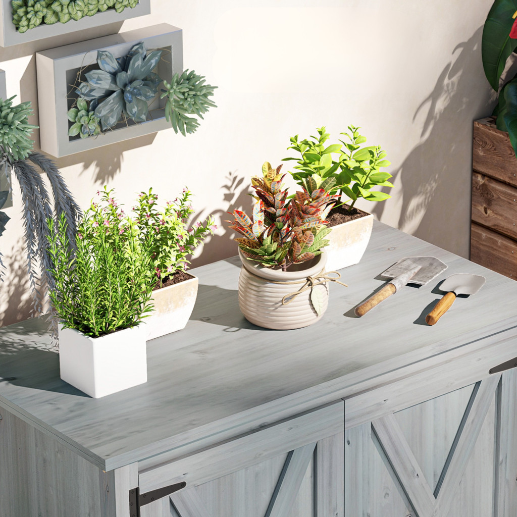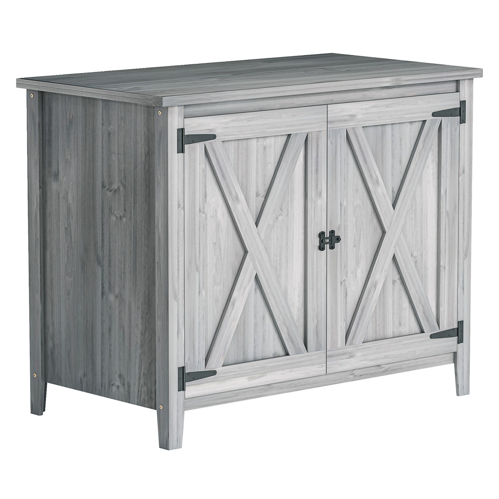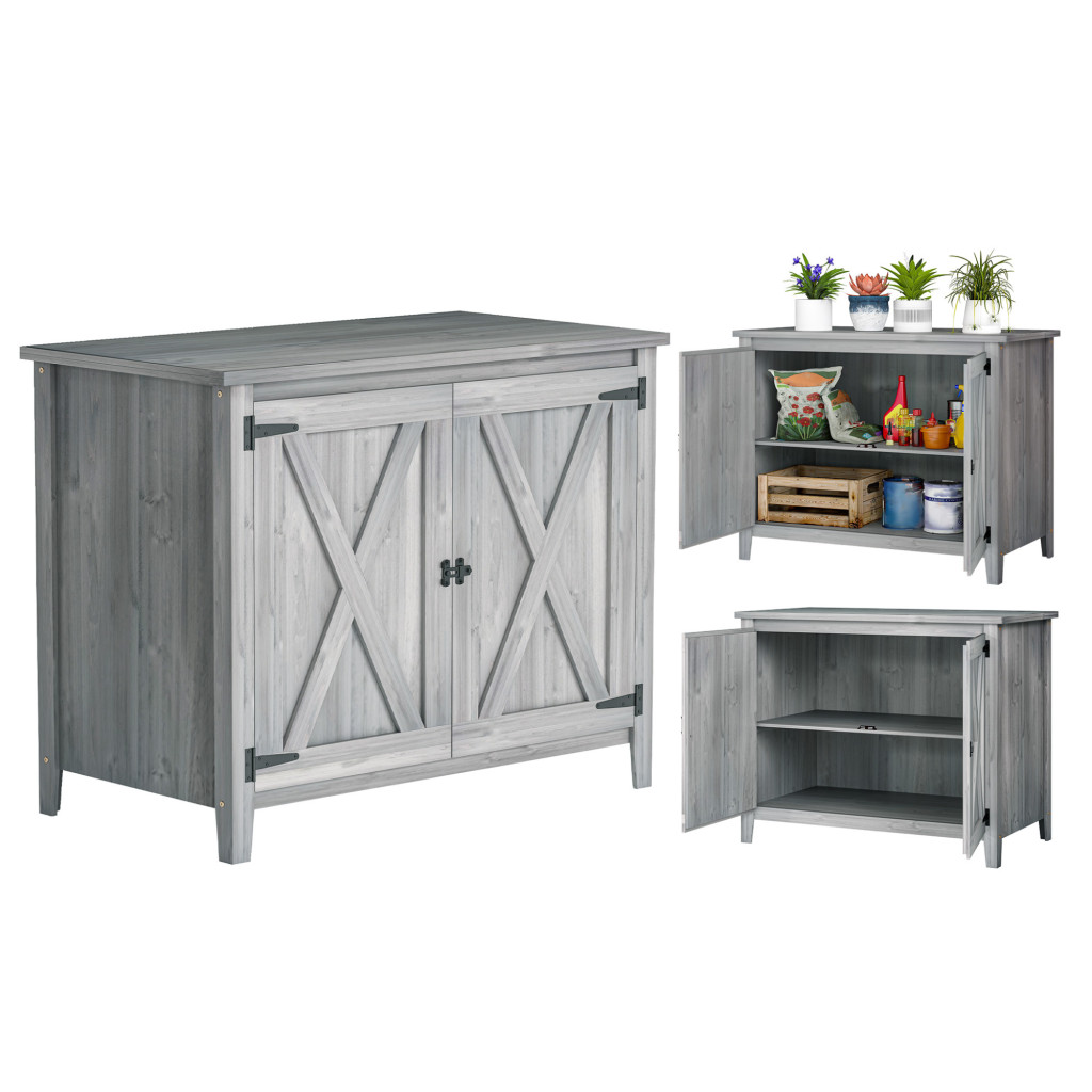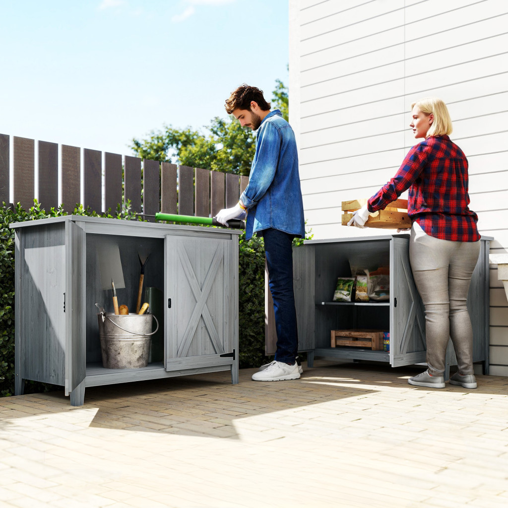 Fa kerti tárolószekrény dupla ajtóval rusztikus kerti szerszámos szekrény világos szürke