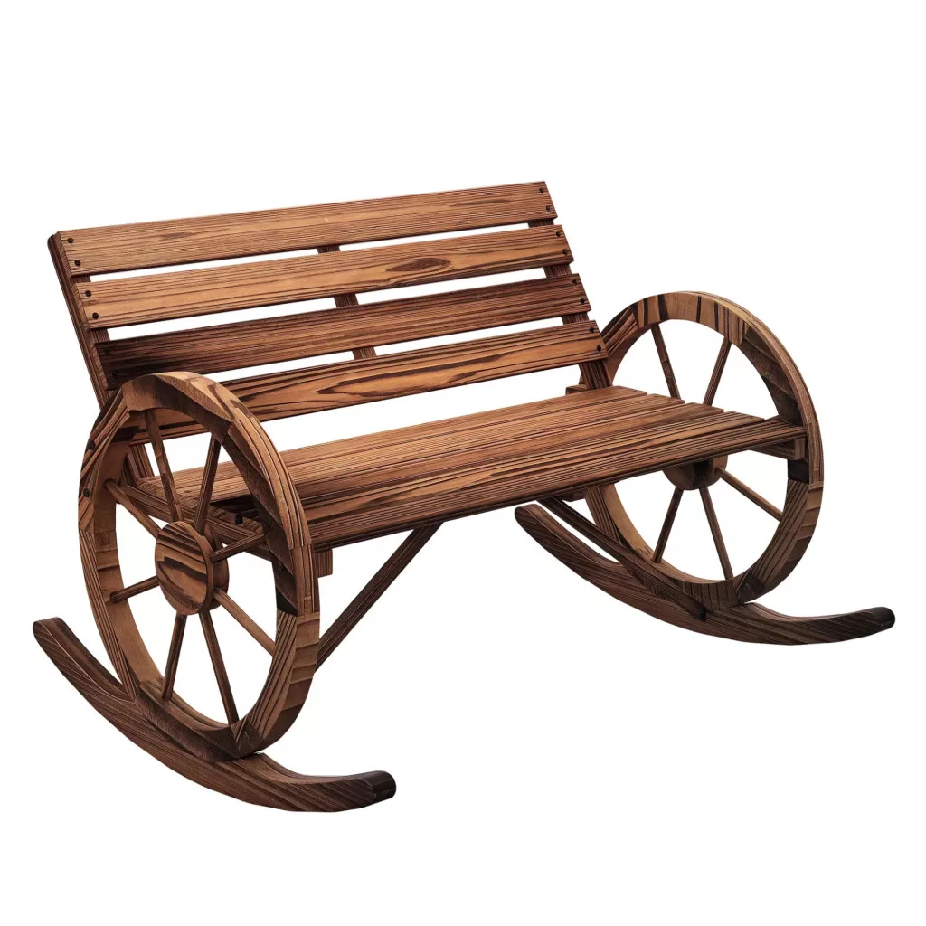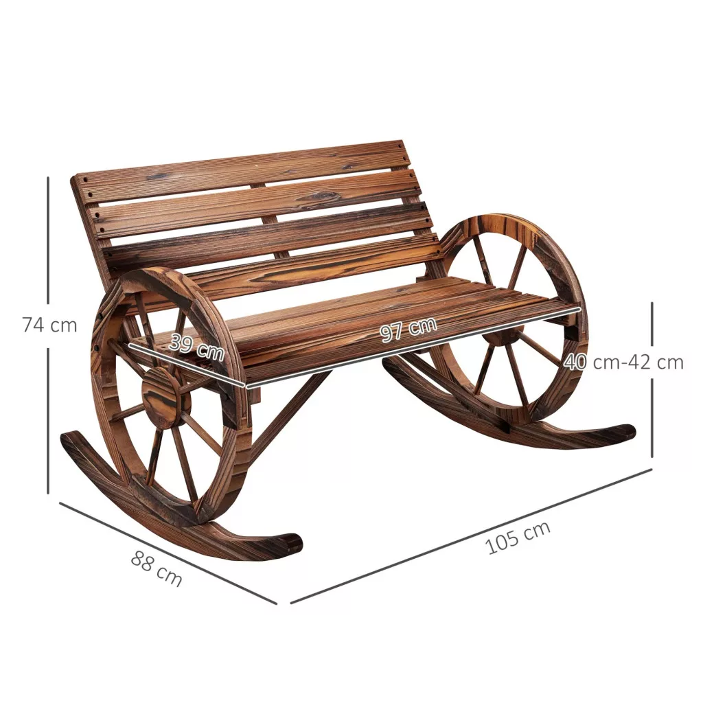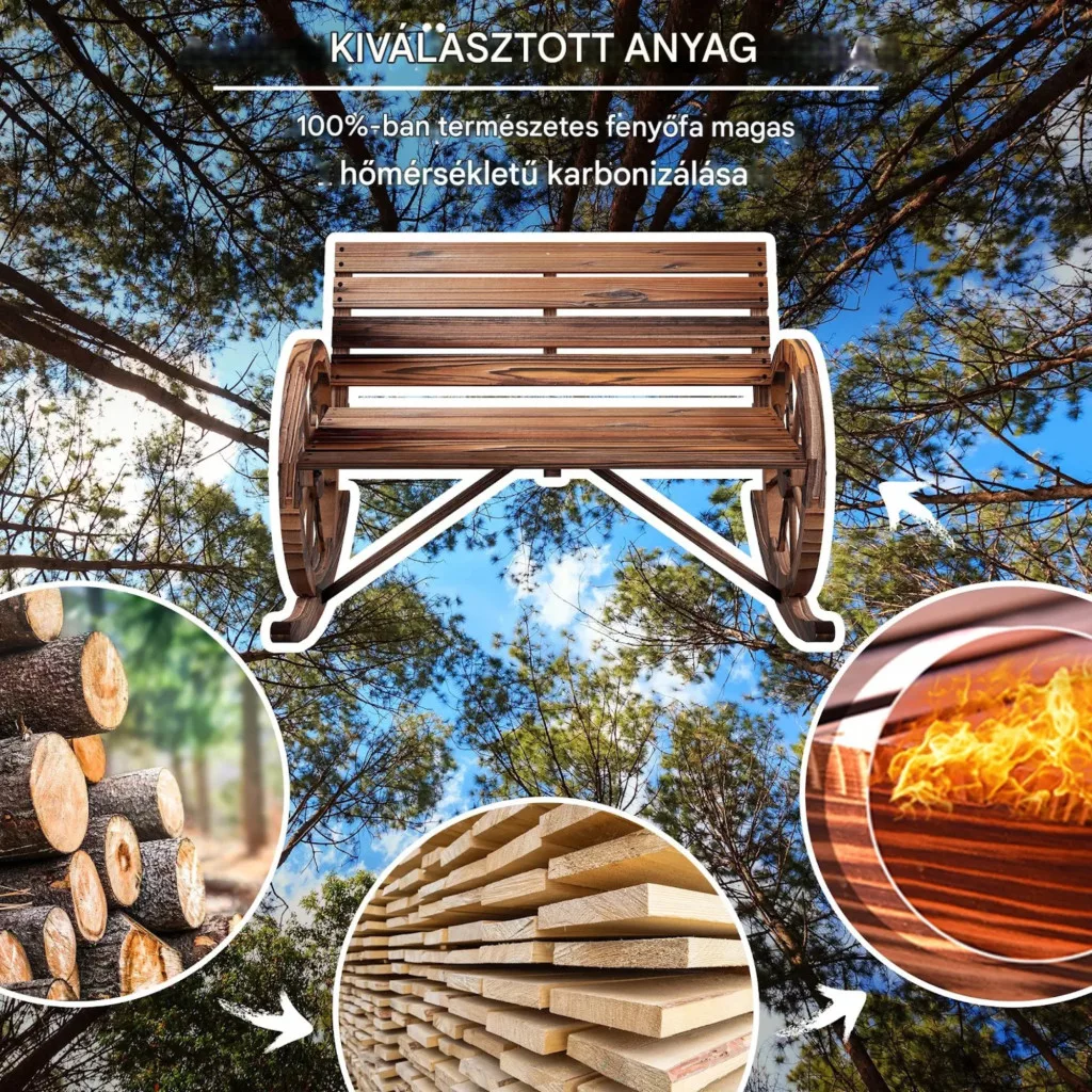 Kerti hintapad 2 személyes fa hintaszék kerék karfával, karbonizált kivitel, 105 cm
