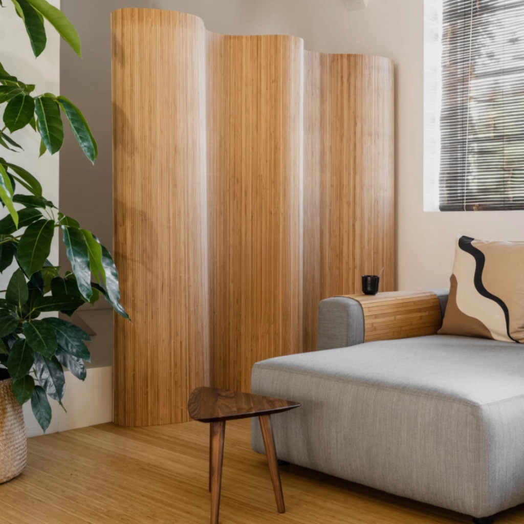Kétoldalas paravánunk egy bonyolult és különleges gyártási folyamatnak köszönhetően került kifejlesztésre, amely során mindkét oldalán masszív bambuszszerkezetből készült. A még nagyobb stabilitás érdekében kétoldalas paravánt tömör bambuszból készült filigrán külső csíkokkal is felszerelt. A bambusz térelválasztó sokféleképpen használható, például: térelválasztó vásárra, kiállítási standra, gasztronómiába, rendelőbe, étkezdébe, öltözőbe a kezelőhelyiségben, irodába, szobaelválasztónak vagy spanyol falnak. Kívánságra a térelválasztó egyszerűen feltekerhető és félretehető.