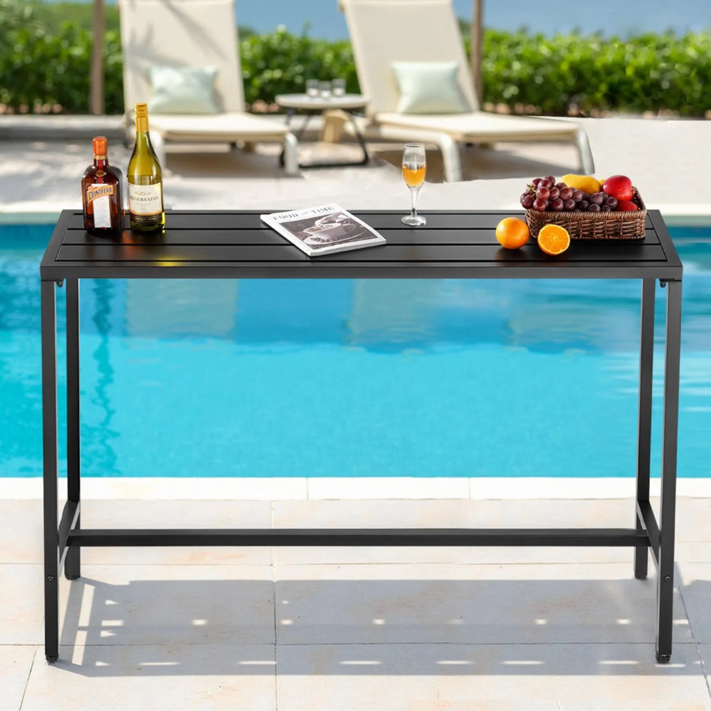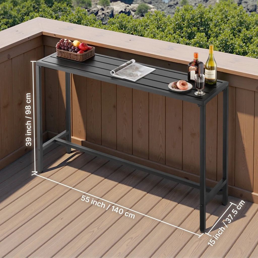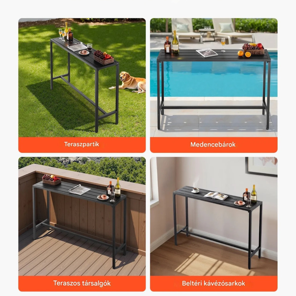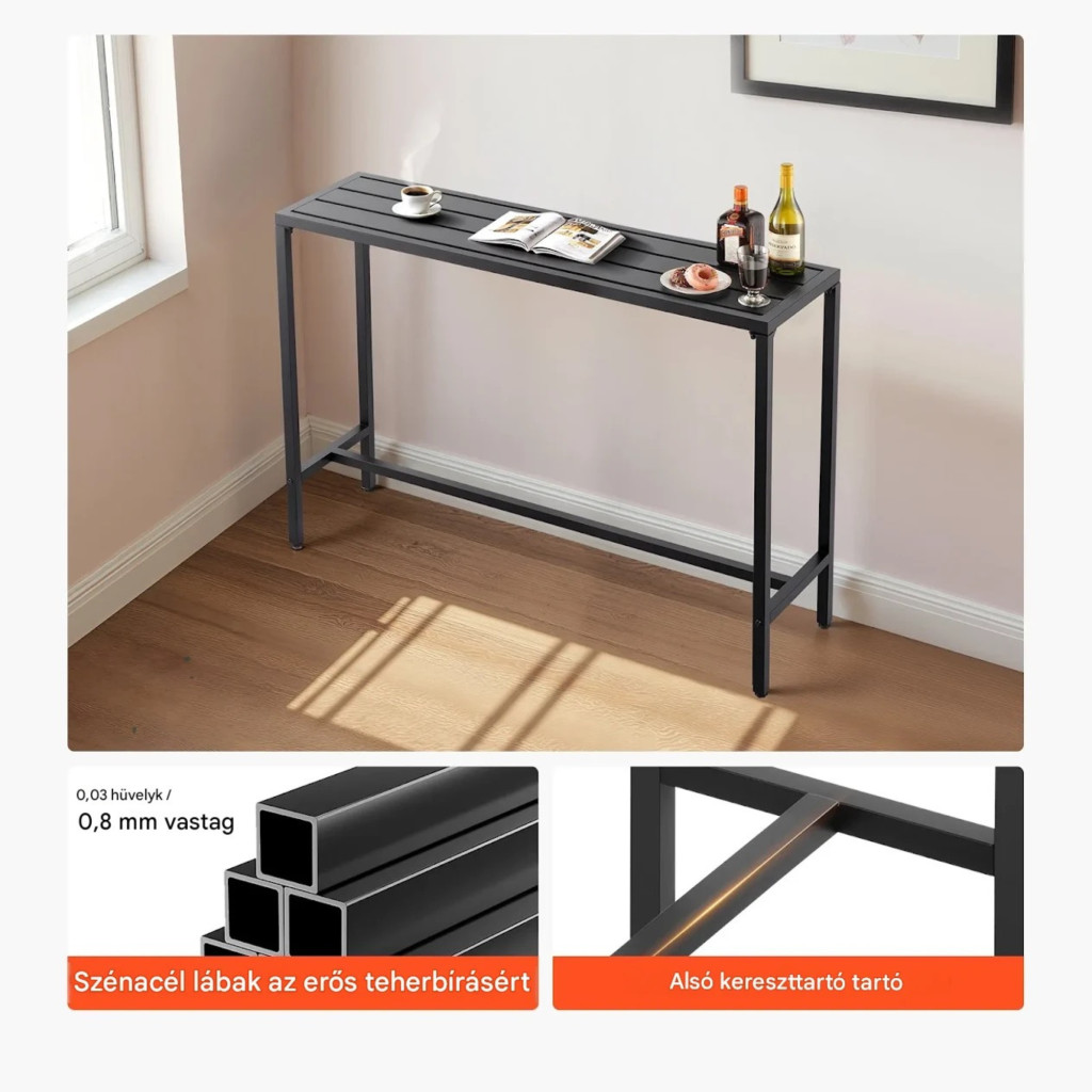 Bárasztal 1400x375x980 mm hosszúkás bisztróasztal fekete, modern álló asztal 2–4 fő részére