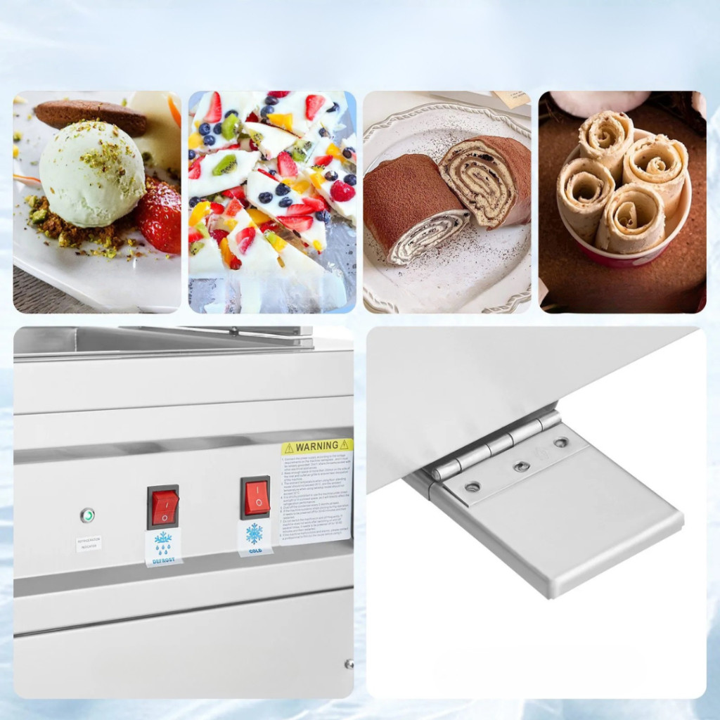 Ha különleges desszertekkel szeretné bővíteni kínálatát, akkor ez a fagylalttekercs készítő gép kiváló választás. A készülék lehetővé teszi a látványos és ízletes fagyasztott jégkrémtekercsek elkészítését, amelyek igazi vendégcsalogató élményt nyújtanak. Legyen szó fagylaltozóról, kávézóról, cukrászdáról vagy street food rendezvényről, ezzel a professzionális géppel kreatív és egyedi édességeket készíthet.