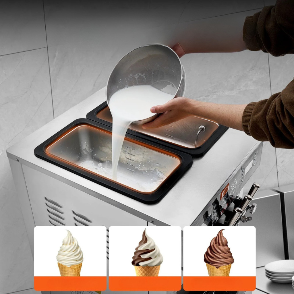 A fagyigép háromféle ízvariáció (két önálló és egy kevert íz) elkészítésére alkalmas, így egyszerre kínálhat klasszikus vaníliát, csokoládét, gyümölcsös fagylaltot vagy különleges desszerteket. Ideális fagylalthoz, tölcsérekhez, jégkrémkelyhekhez és süteményekhez egyaránt.