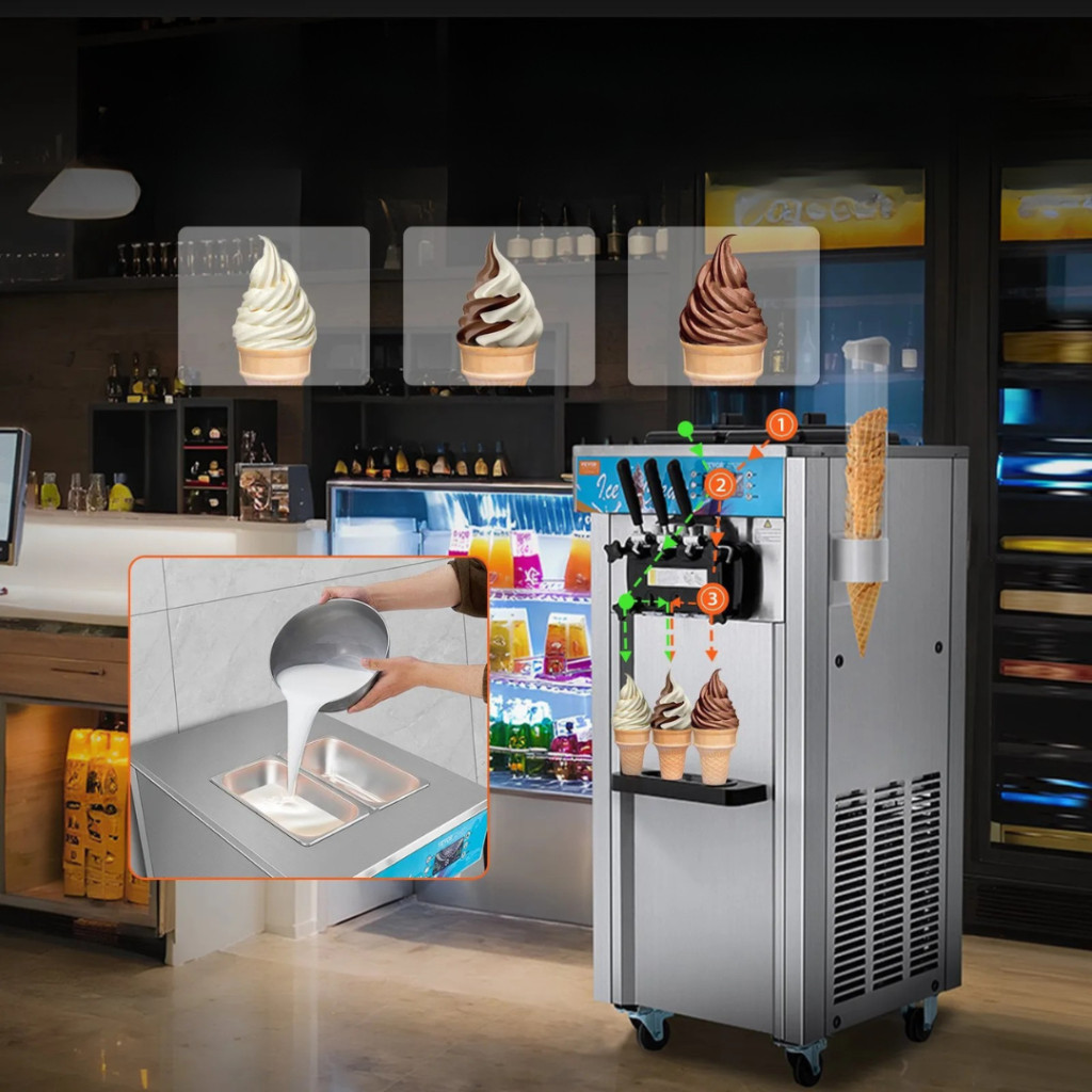 Csavaros fagyigép 21–31 liter/óra teljesítménnyel fagylaltkészítő gép 3 ízesítéssel