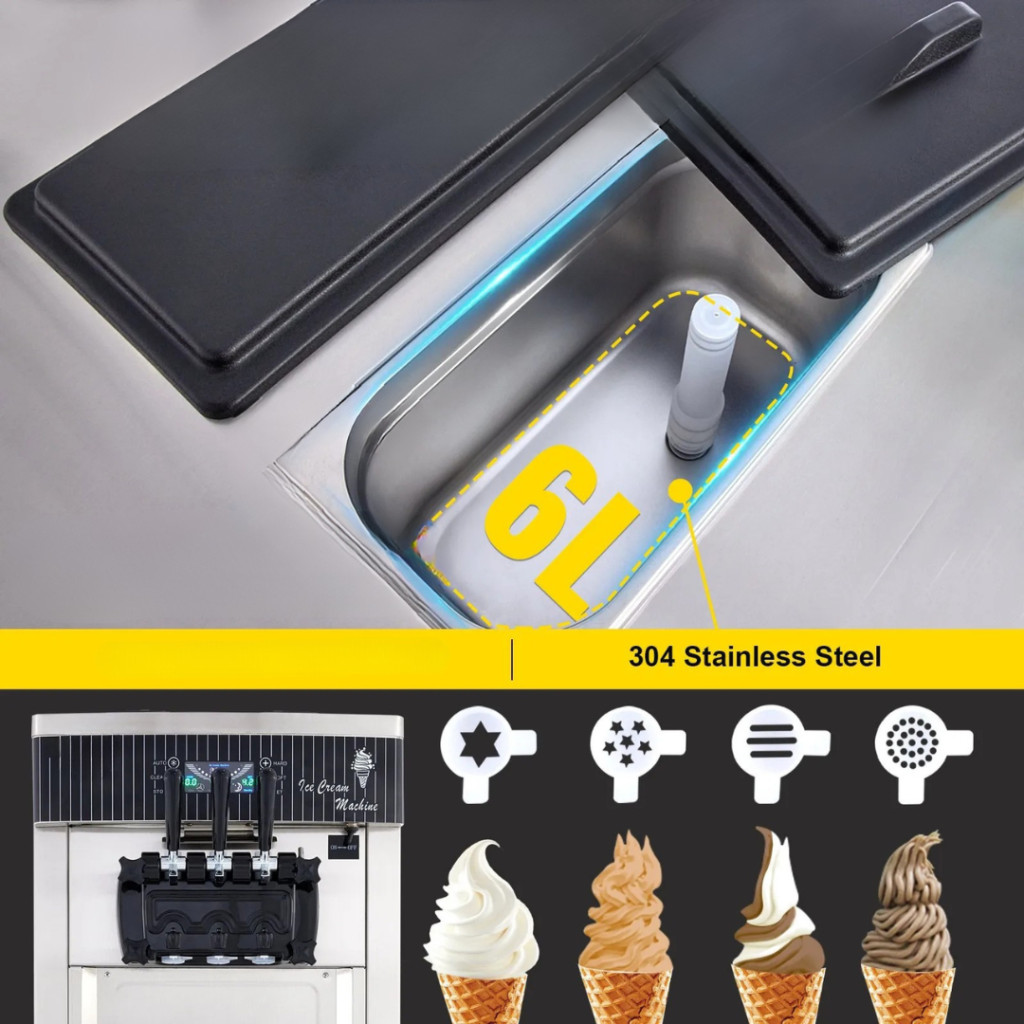 Ha nagy mennyiségű, friss és krémes fagylaltot szeretne készíteni gyorsan és hatékonyan, ez a 2200 W teljesítményű, álló kivitelű, professzionális fagyigép a tökéletes választás. A két darab, egyenként 6 literes, élelmiszeripari minőségű 304 rozsdamentes acél tartály akár 20–28 liter fagylalt előállítását is lehetővé teszi óránként, így ideális éttermek, kávézók, cukrászdák, gyorséttermek, rendezvények vagy nagyobb háztartások számára.