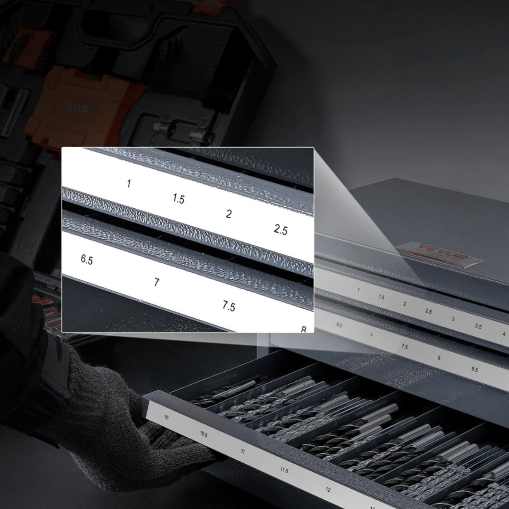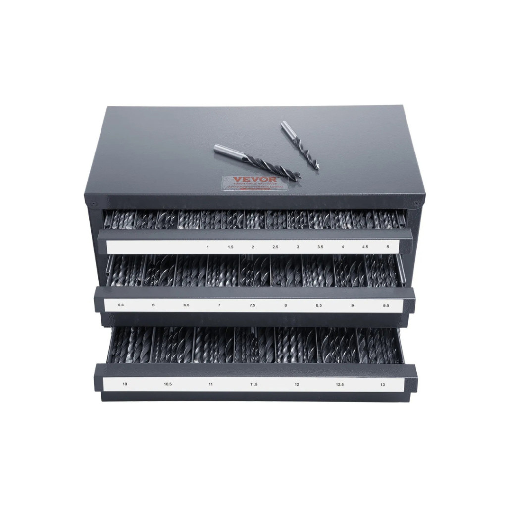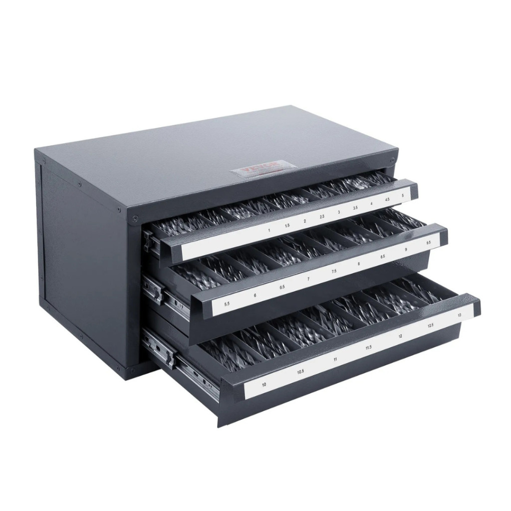 Professzionális acél fúrószár-tároló szekrény 3 fiókos, 29 rekeszes, 1–13 mm mérettartományhoz