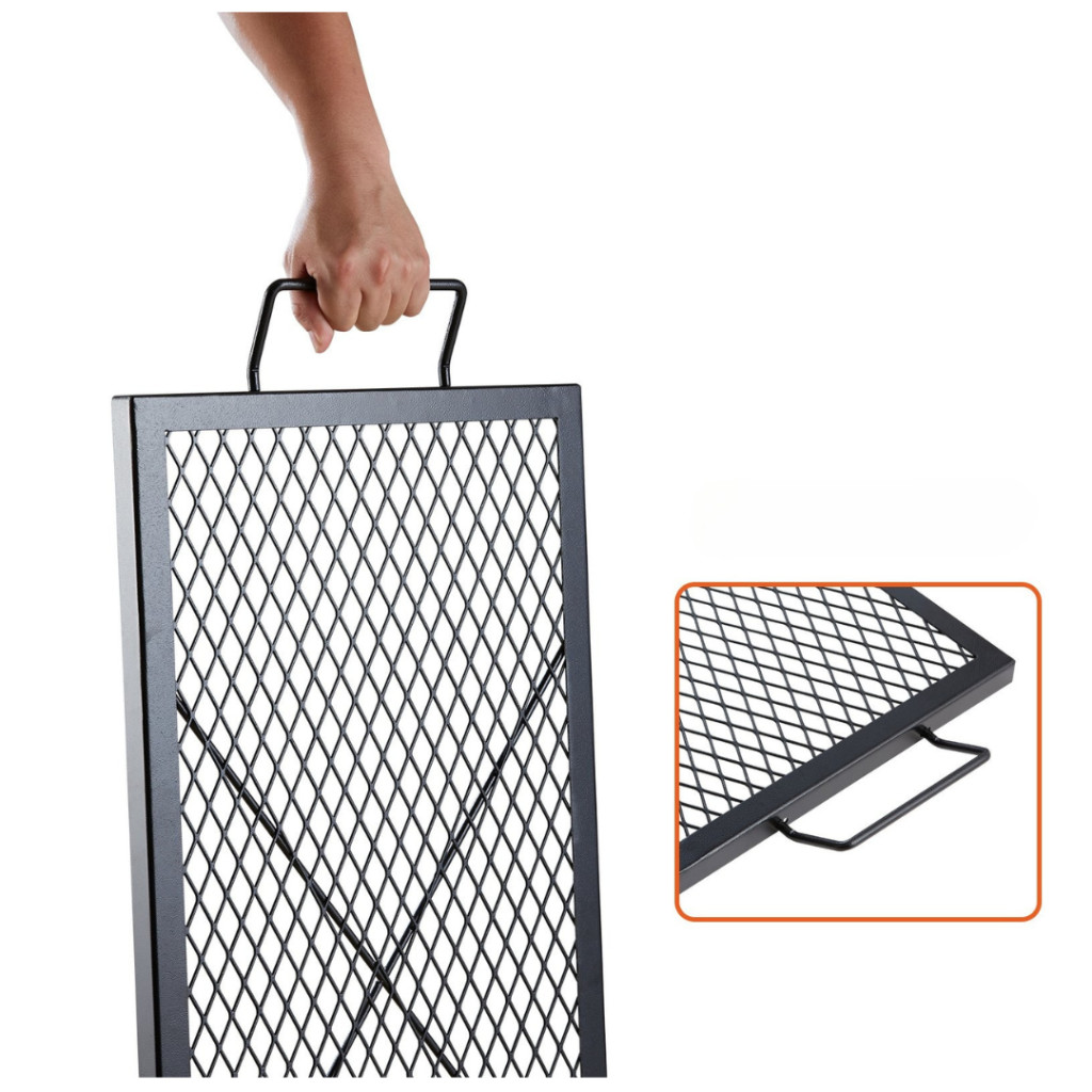 Az integrált acélfogantyú és a merevítőkeret segítségével biztonságosan mozgatható, még használat közben is. A kialakítás lehetővé teszi, hogy gyorsan hozzáférjen a parázshoz vagy szükség esetén egyszerűen pozícionálja újra a rácsot.