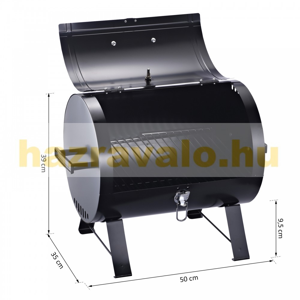 Grillsütő asztallapokhoz, kempingezéshez, piknikhez hőmérővel