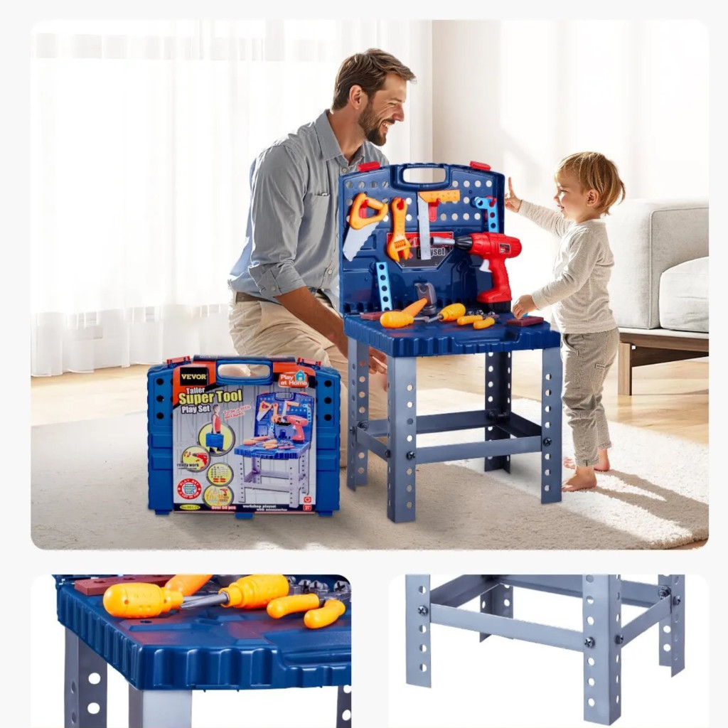 Mert ez a gyerek szerszámasztal egy praktikus, hordozható és fejlesztő játék, amely segíti gyermeke kreativitását, kézügyességét és problémamegoldó képességét.