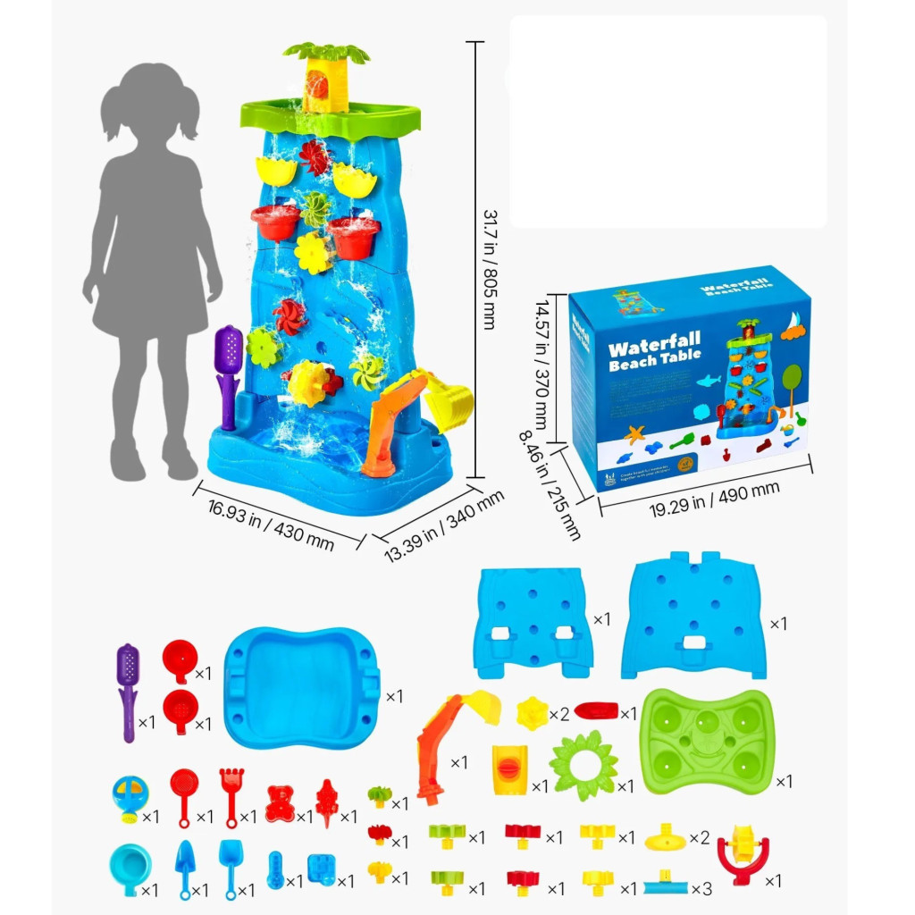 Játszóasztal vízesés játékkészlet 37 részes kiegészítőkkel kültéri vízes játék 3 éves kortól
