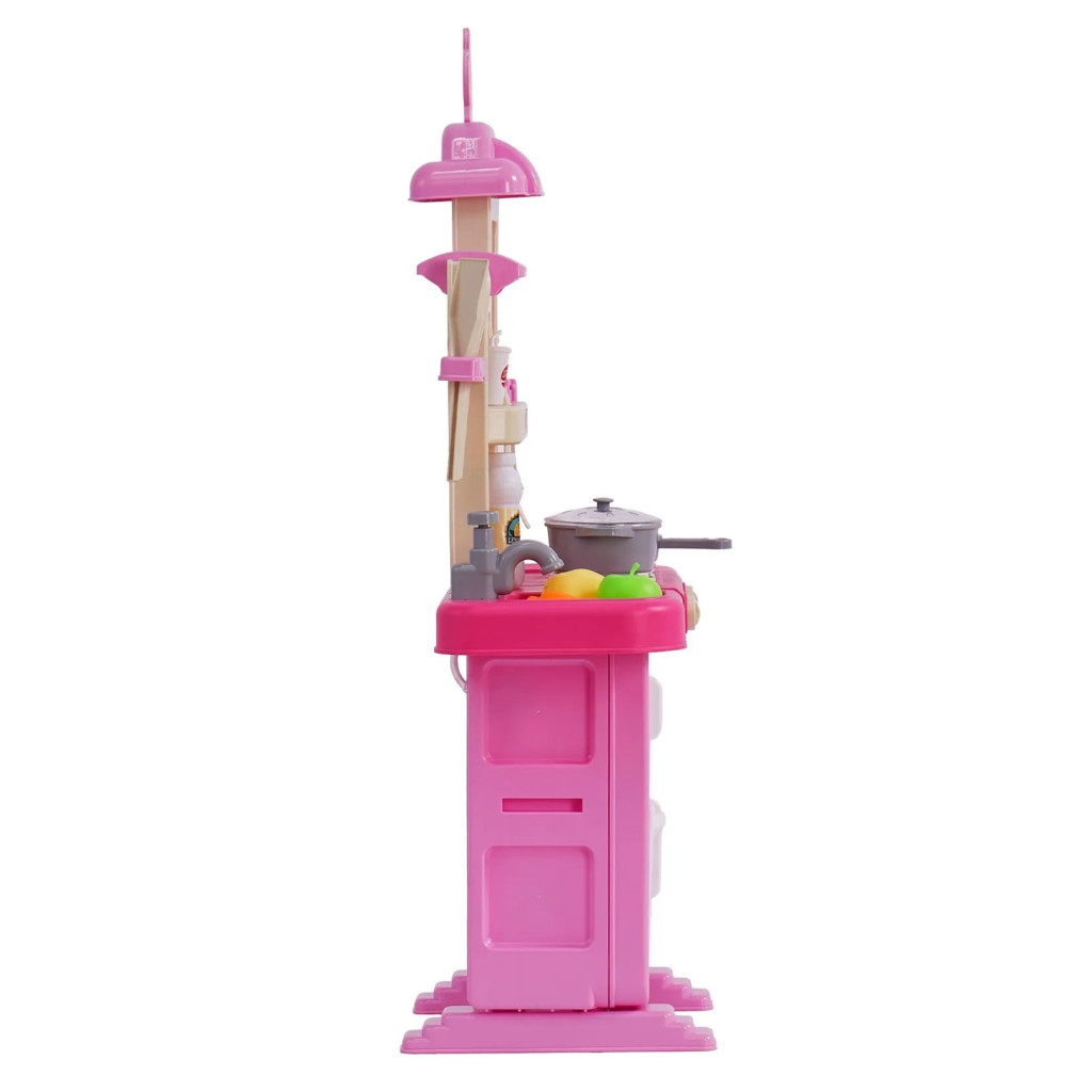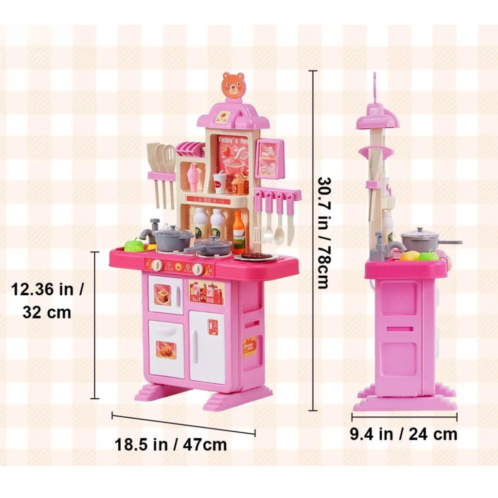 Gyerek játékkonyha rózsaszín műanyag konyha gőz funkcióval, fénnyel és hanggal, 48 kiegészítővel