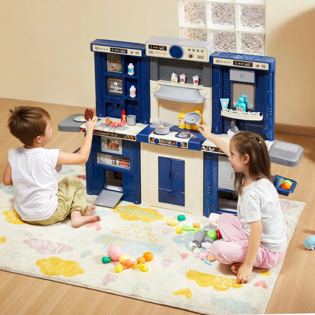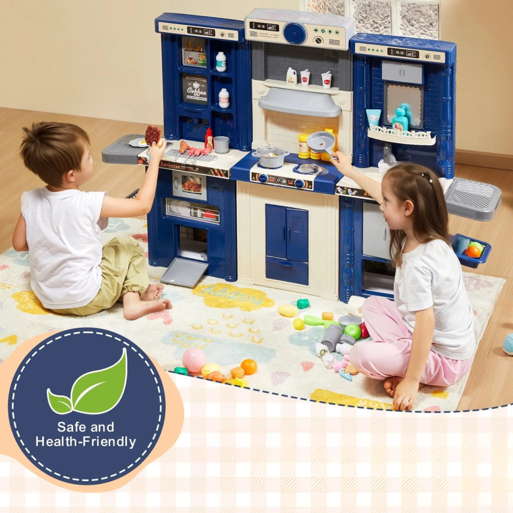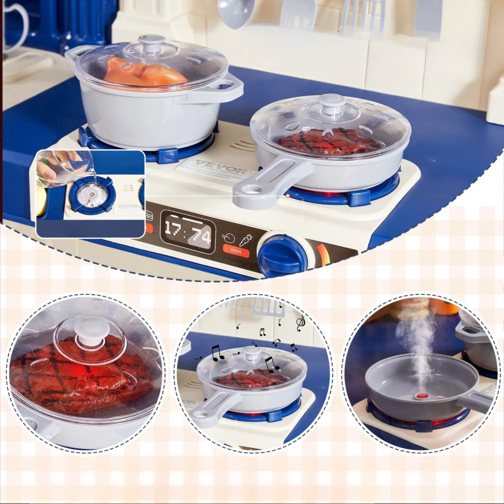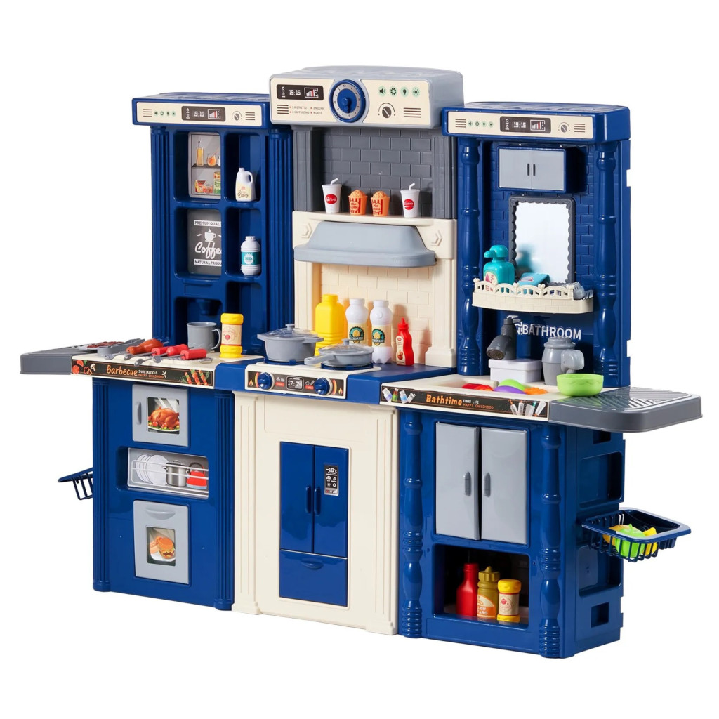 Gyerek játékkonyha 3 az 1-ben konyha gőz funkcióval, fénnyel és hanggal, 74 kiegészítővel kék