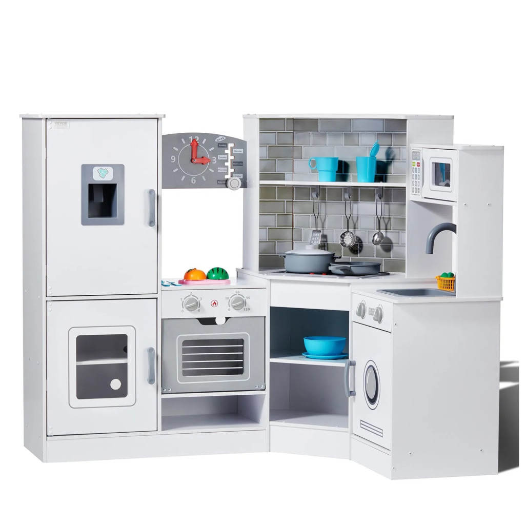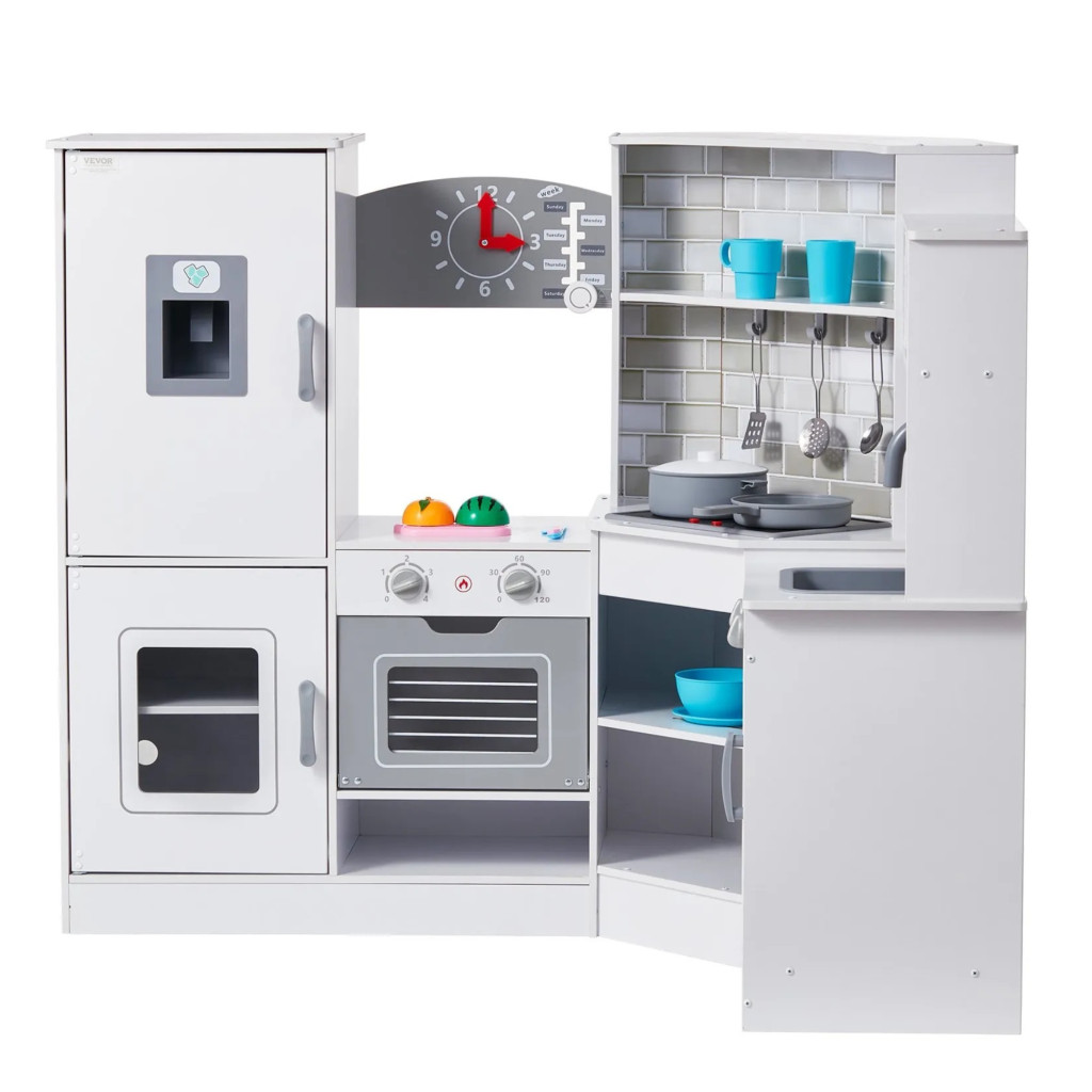 Gyerek sarokkonyha fehér fa játékkonyha fénnyel és hanggal