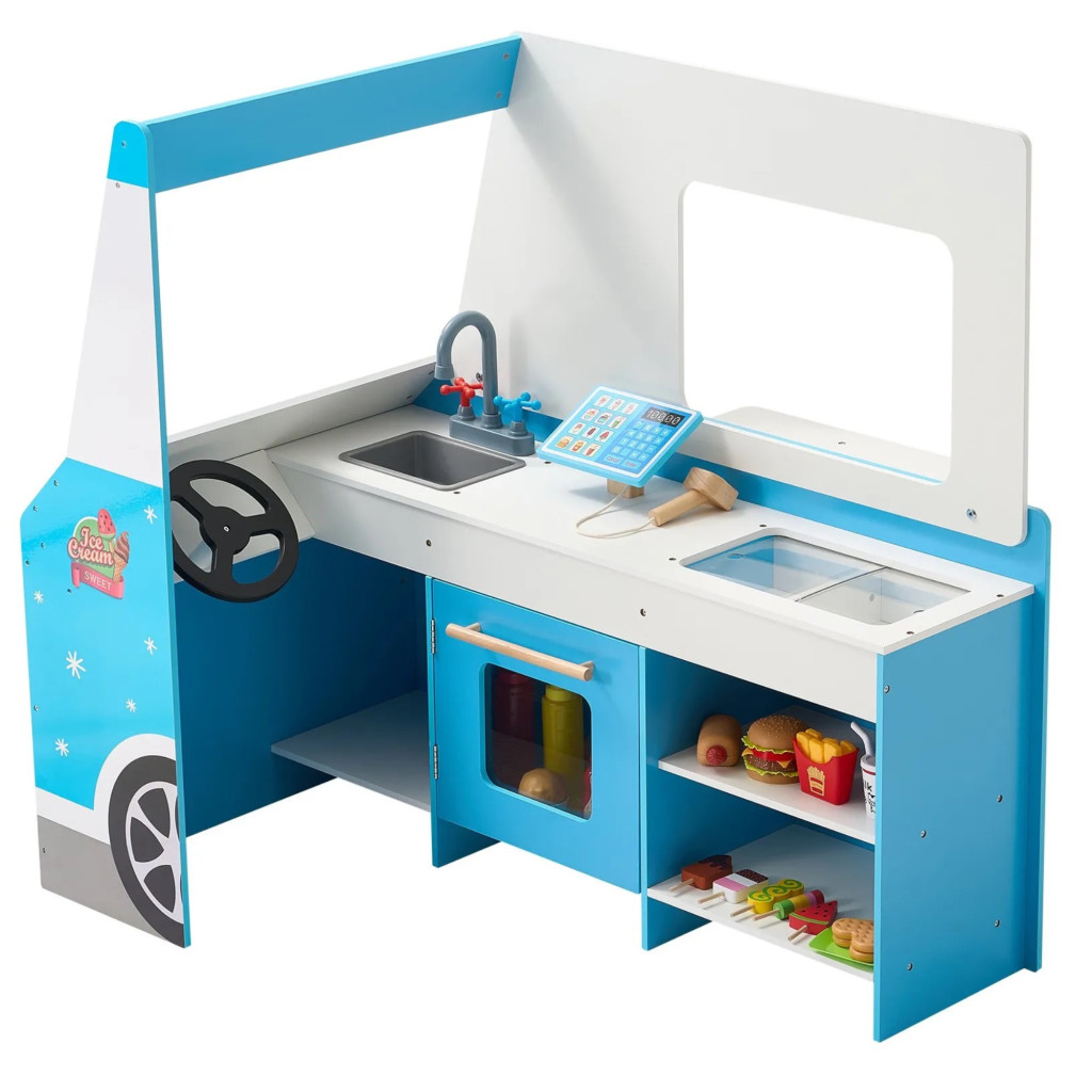 Ezzel a fa játék fagylaltos kocsi modellel gyermeke belekóstolhat a „vállalkozói” világba. Fagylaltot készíthet, hot dogot vagy akár hamburgert „szolgálhat fel”, miközben kommunikál és együtt játszik másokkal.