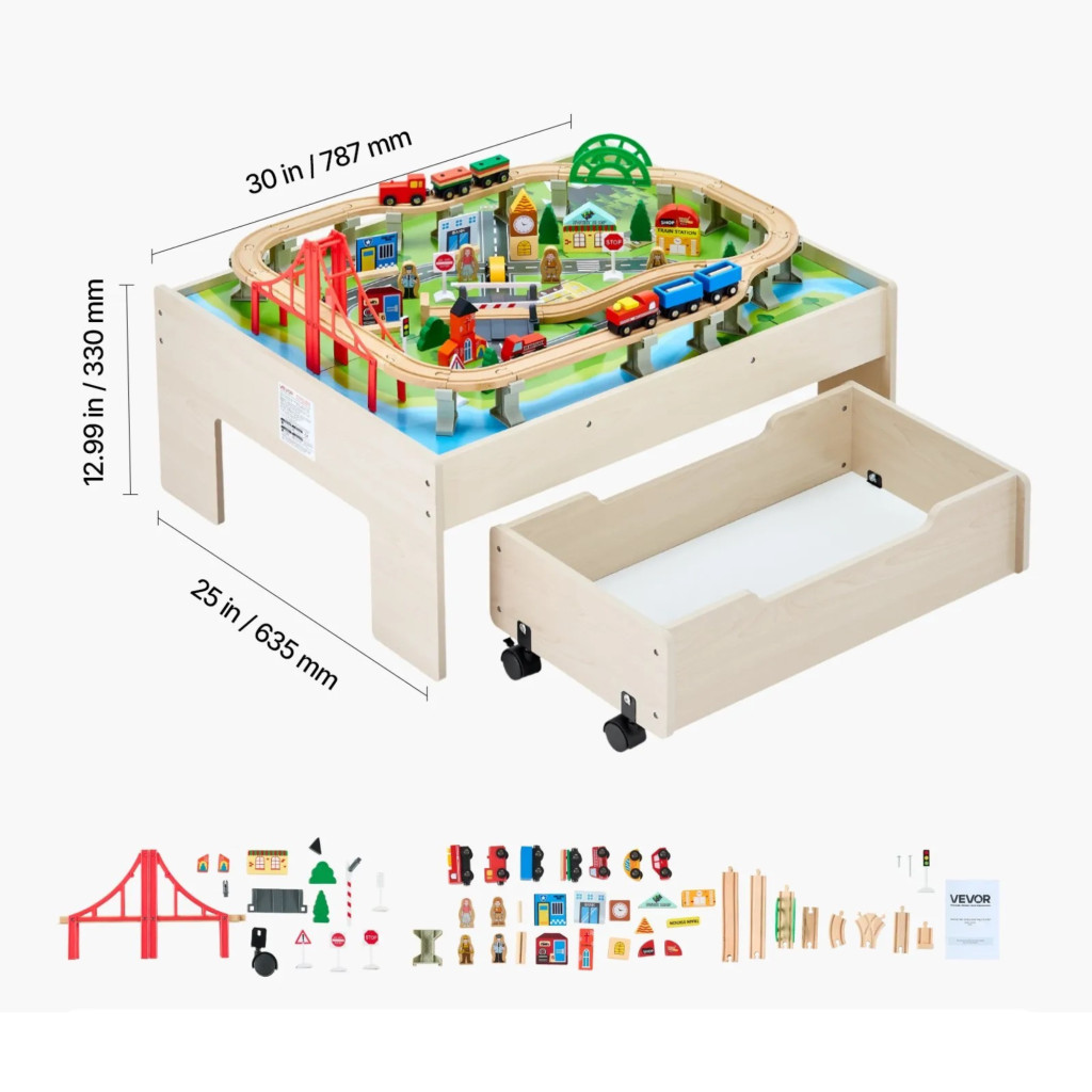 Fa gyerek játékasztal vasút szettel 100 db 3 az 1-ben játszóasztal