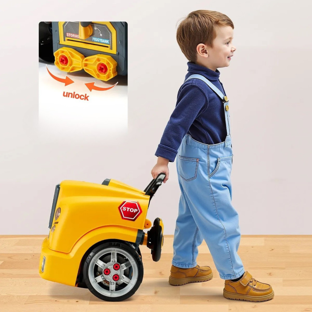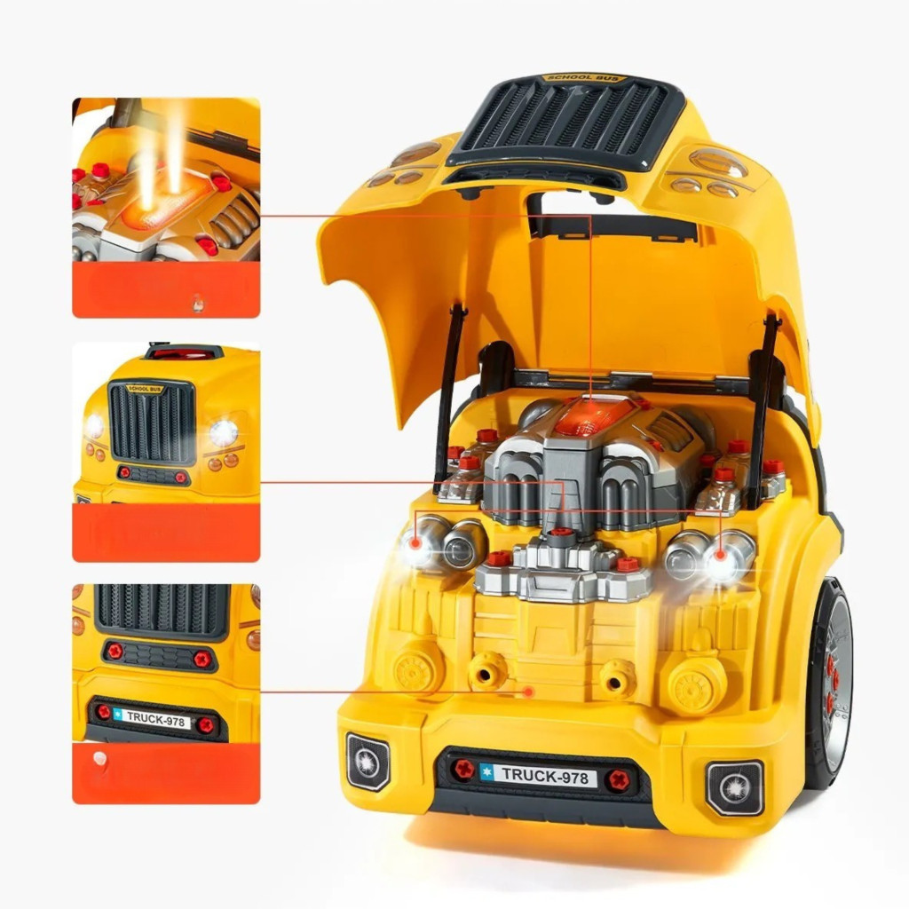 Gyerek autószerelő játék 60 darabos autójavító készlet gyerekeknek 3 éves kortól, sárga
