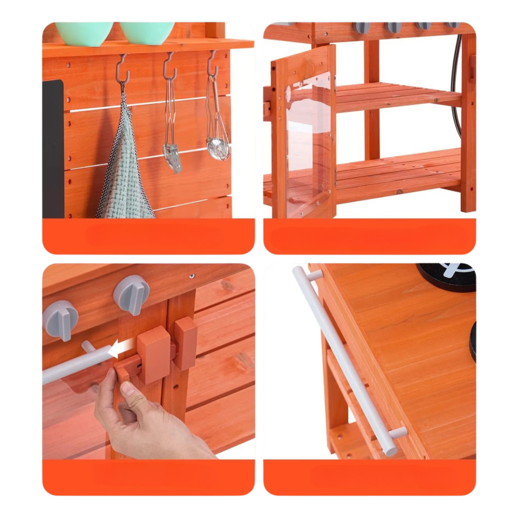 Engedje, hogy gyermeke felfedezze a főzés örömét a szabadban ezzel a különleges kerti gyerekkonyha megoldással! Ez a prémium minőségű, fából készült játék nemcsak szórakoztat, hanem fejleszti a kreativitást, a kézügyességet és a szociális készségeket is. A valósághű kialakításnak köszönhetően a gyerekek igazi kis séfként élhetik át a főzés élményét – akár a kertben, akár a teraszon.