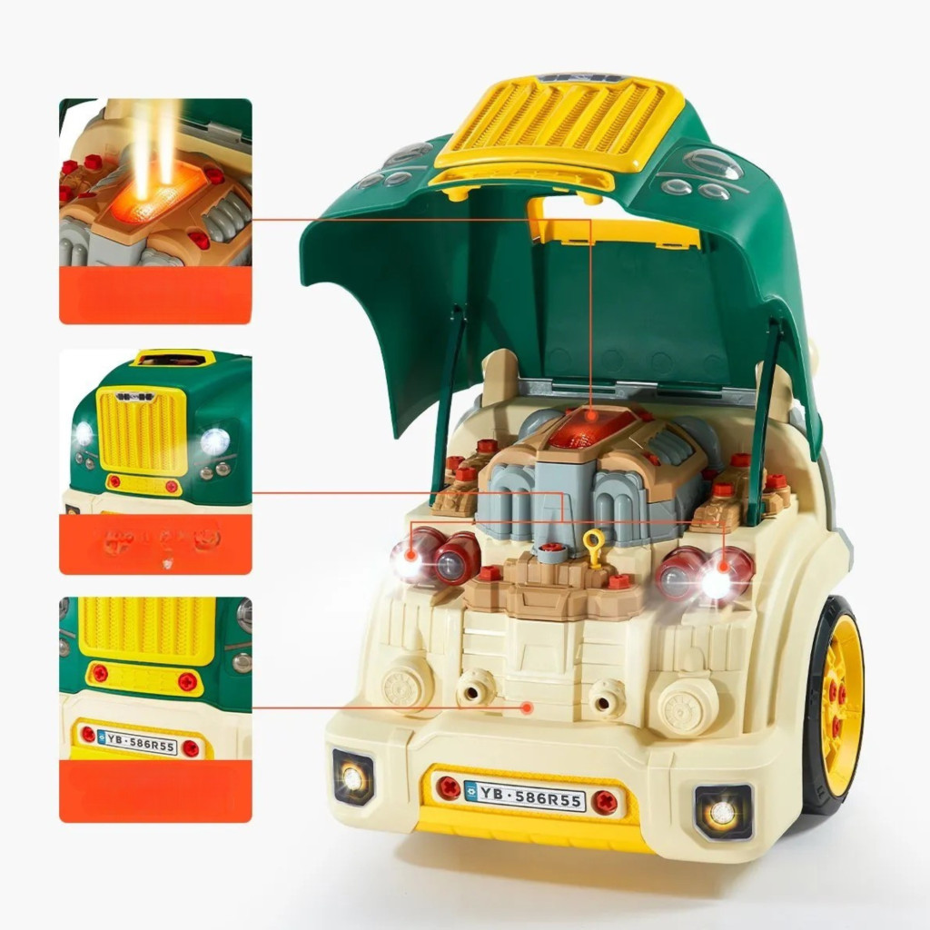 Gyerek autószerelő játék 60 darabos autójavító készlet gyerekeknek 3 éves kortól, zöld motor szerelő szett