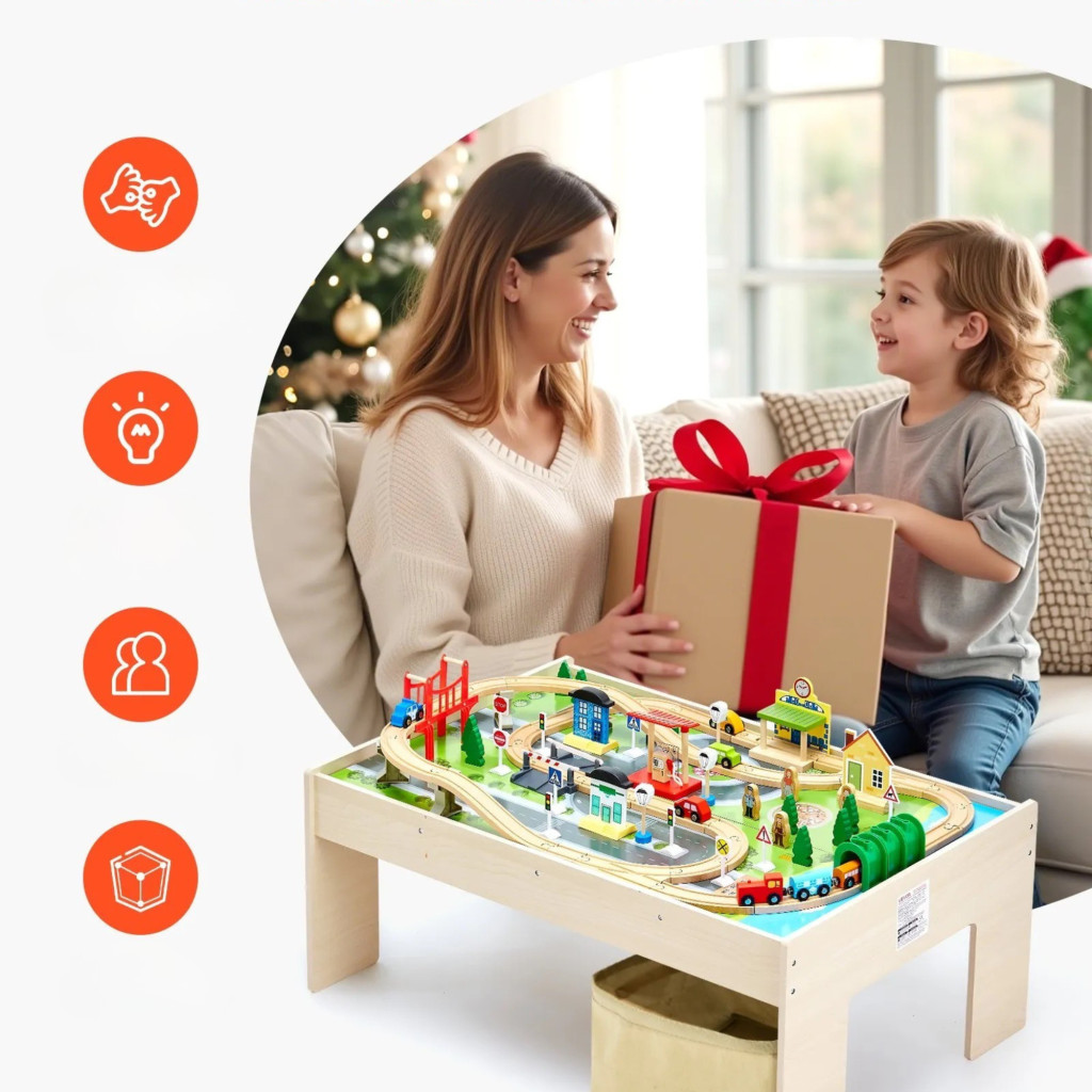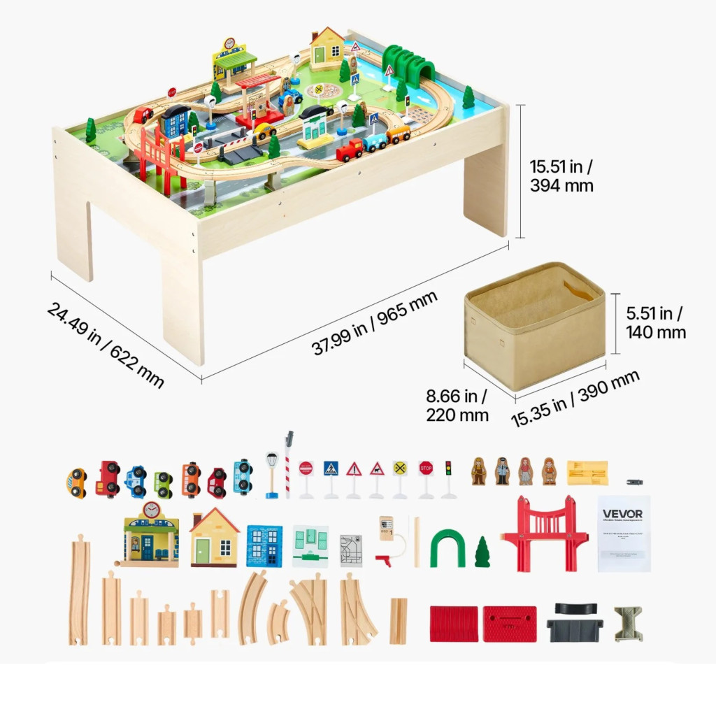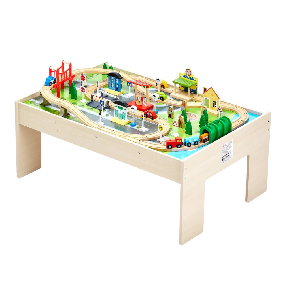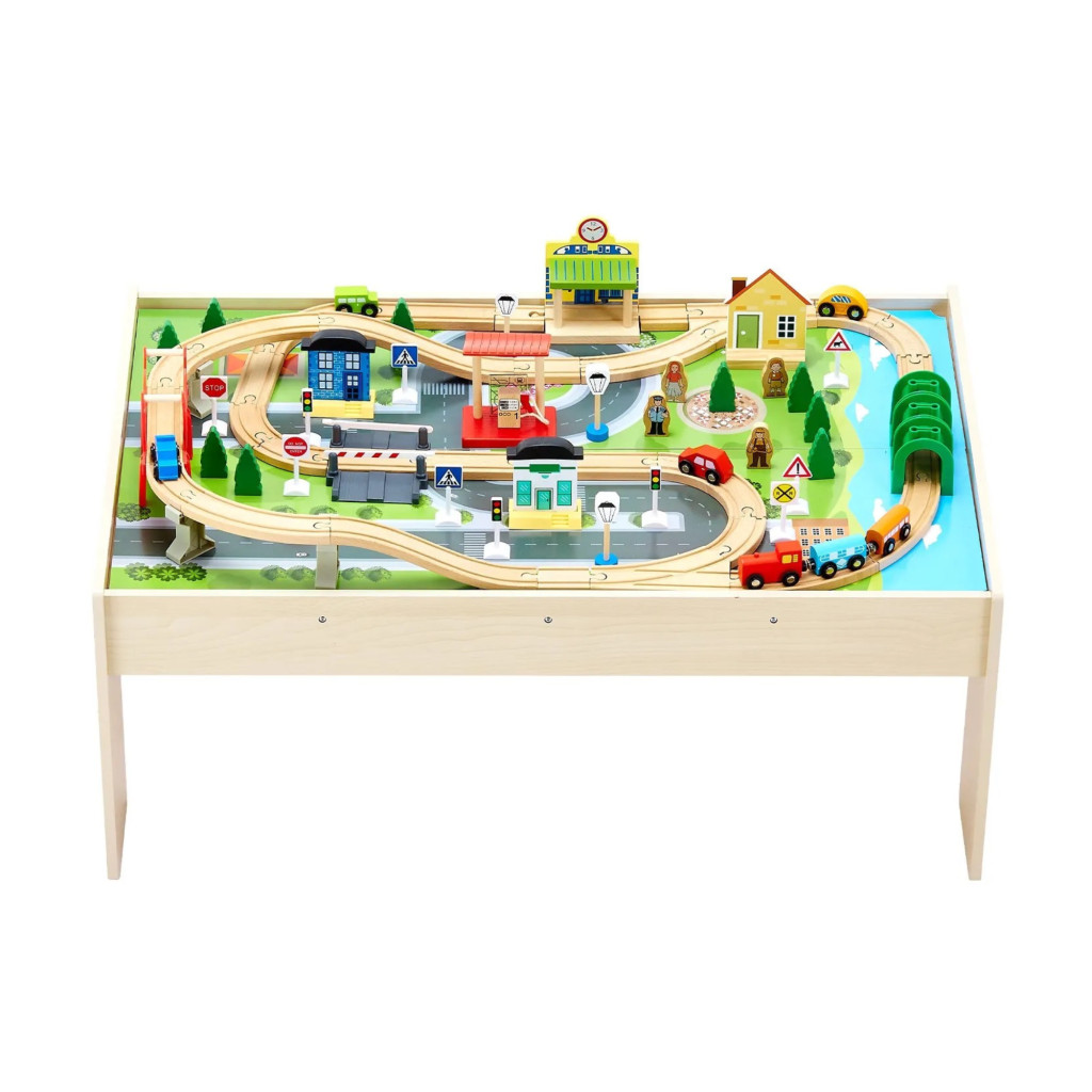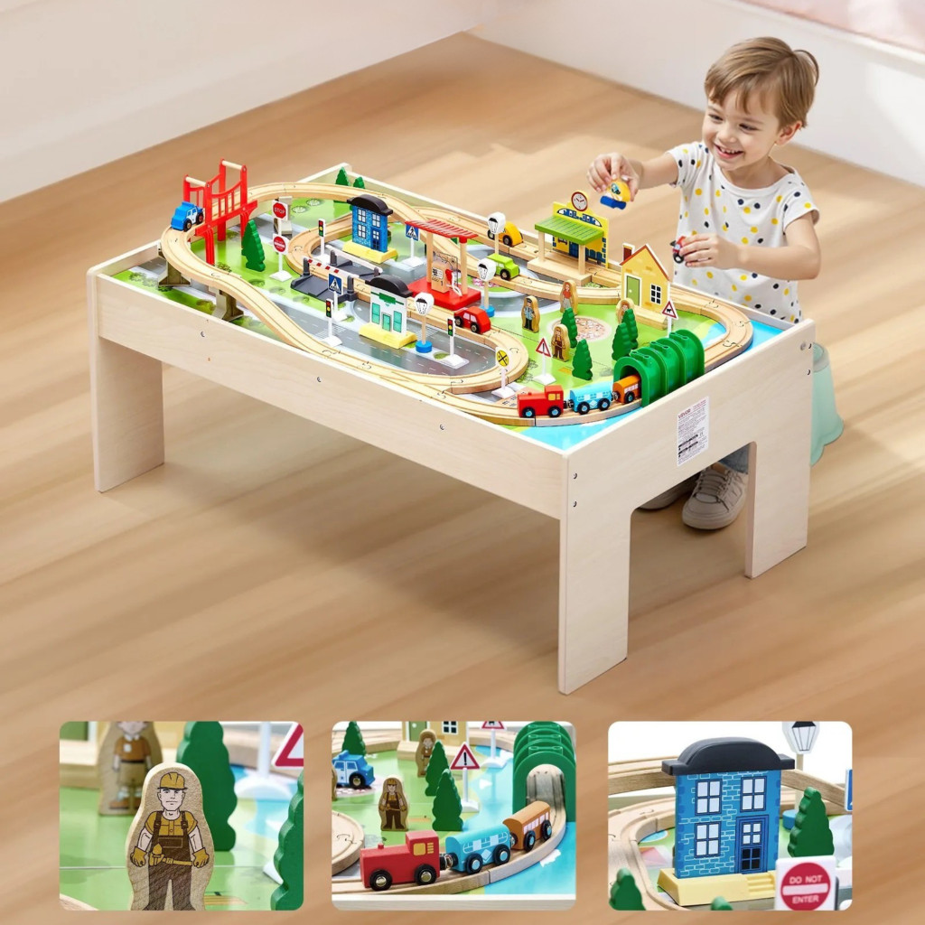 Fa gyerek játékasztal 3 az 1-ben vasút játékasztal 84 részes szettel
