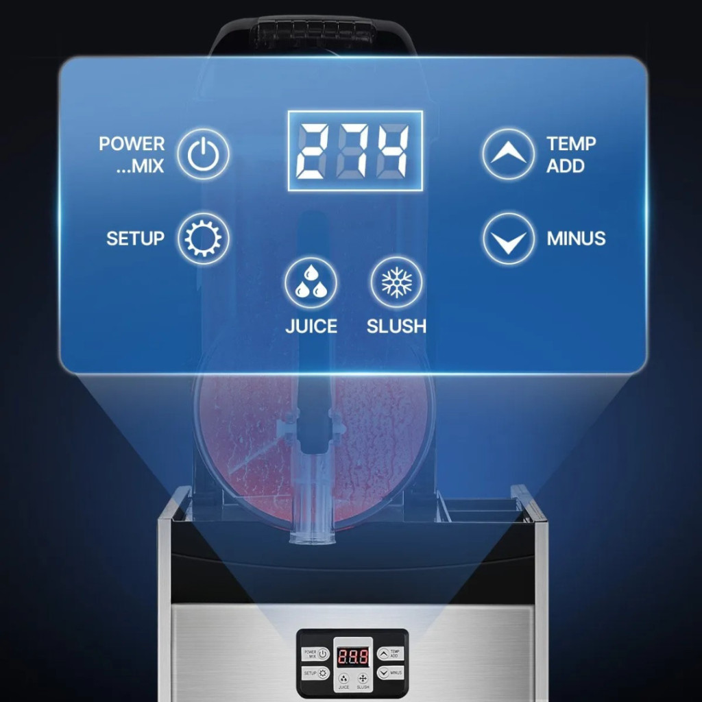Mert a nagy kapacitás, a széles hőmérséklet-tartomány és a professzionális, rozsdamentes acél kivitel együttesen garantálja, hogy italai mindig frissen, a kívánt állagban kerüljenek a vendégek elé – legyen szó forgalmas kávézóról, báról vagy rendezvényhelyszínről.