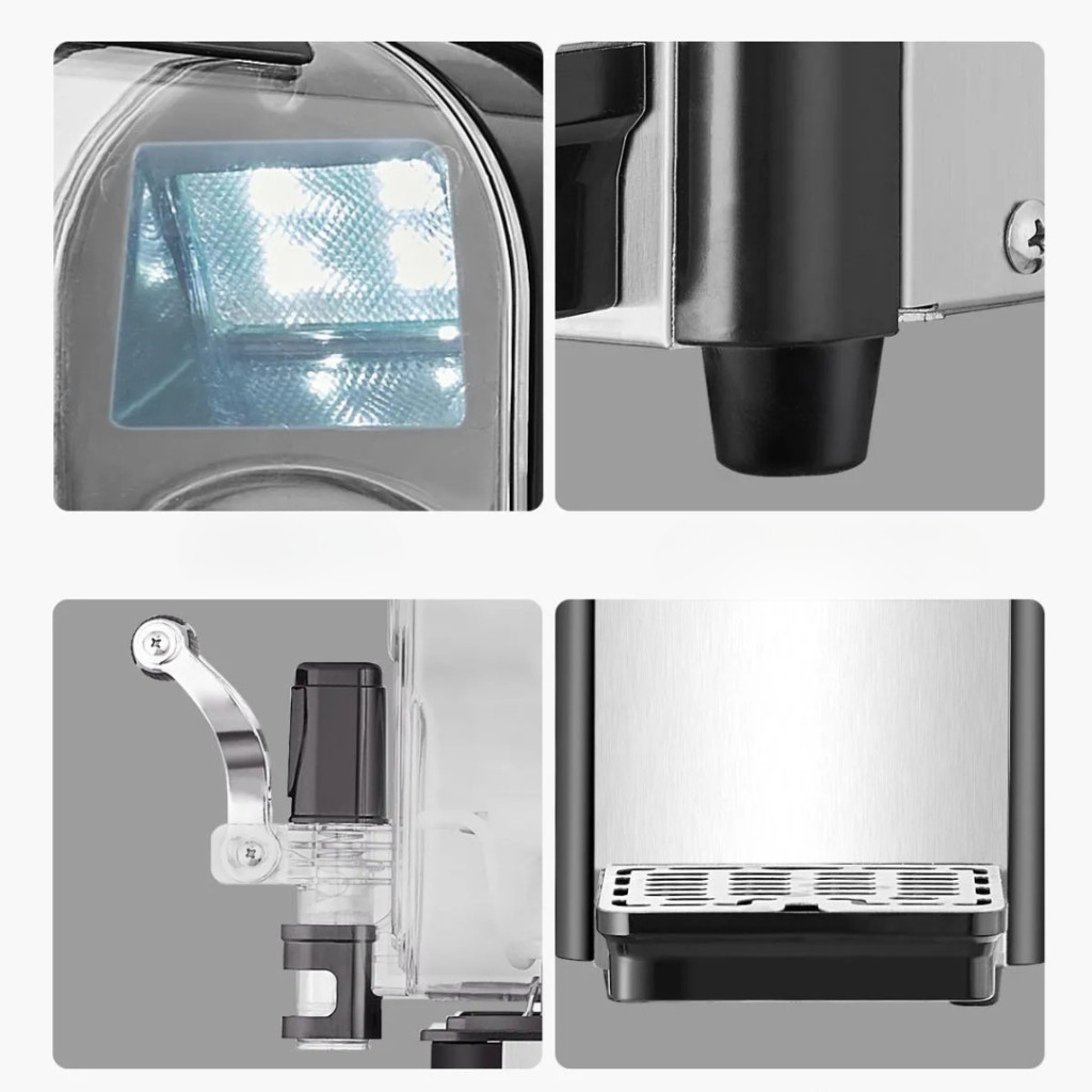 • Átlátszó tartály a látványos, színes italbemutatóhoz
