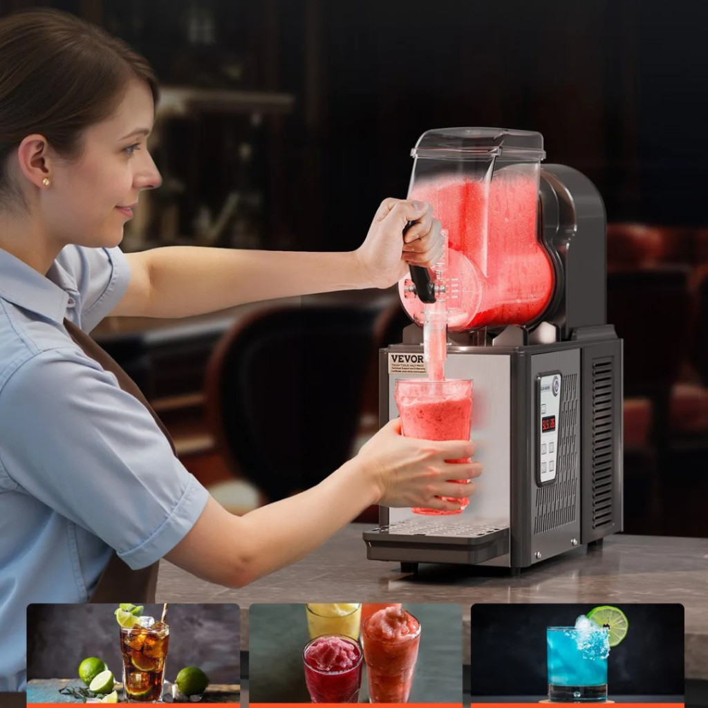 Ez a nagy teljesítményű, vendéglátóipari minőségű jégkása készítő gép ideális választás bárok, kávézók, éttermek, cukrászdák és rendezvényhelyszínek számára. Egy darab, 4 literes átlátszó tartályával egy töltéssel akár 16 adag frissítő italt készíthet, legyen szó gyümölcslevekről, jégkásáról, margarita koktélokról vagy jeges kávéról. Kompakt mérete miatt kisebb pultokban és mobil vendéglátásban is tökéletesen használható.