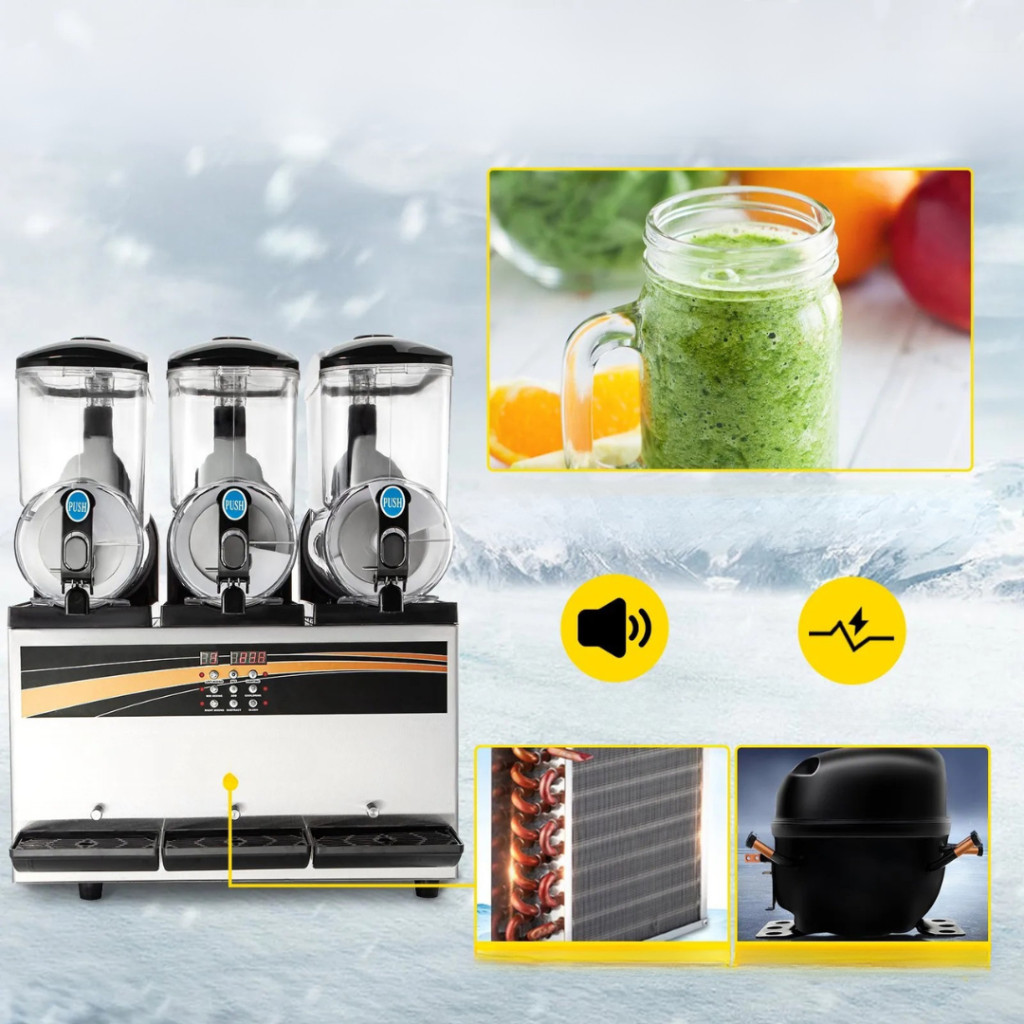 Ez a háromtartályos jégkása készítő gép ideális választás azoknak a vendéglátóhelyeknek, akik nagy mennyiségű, változatos ízesítésű jégkását és hideg italokat szeretnének gyorsan és hatékonyan elkészíteni. A nagy kapacitás, a modern kialakítás és a precíz hőmérséklet-szabályozás révén bármikor friss, tökéletes állagú italokat kínálhat vendégeinek.
