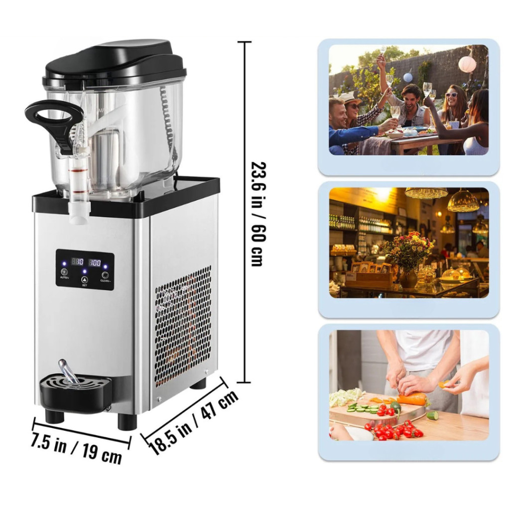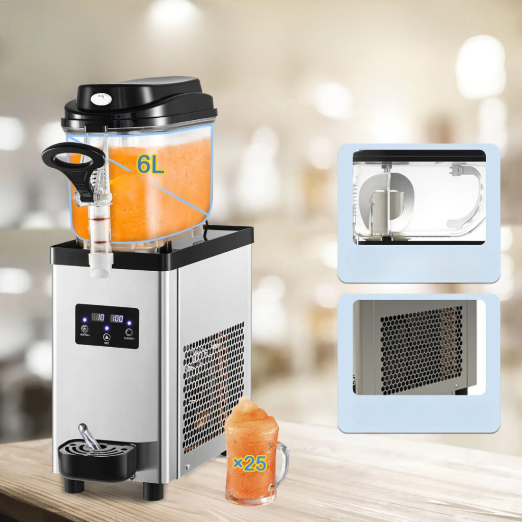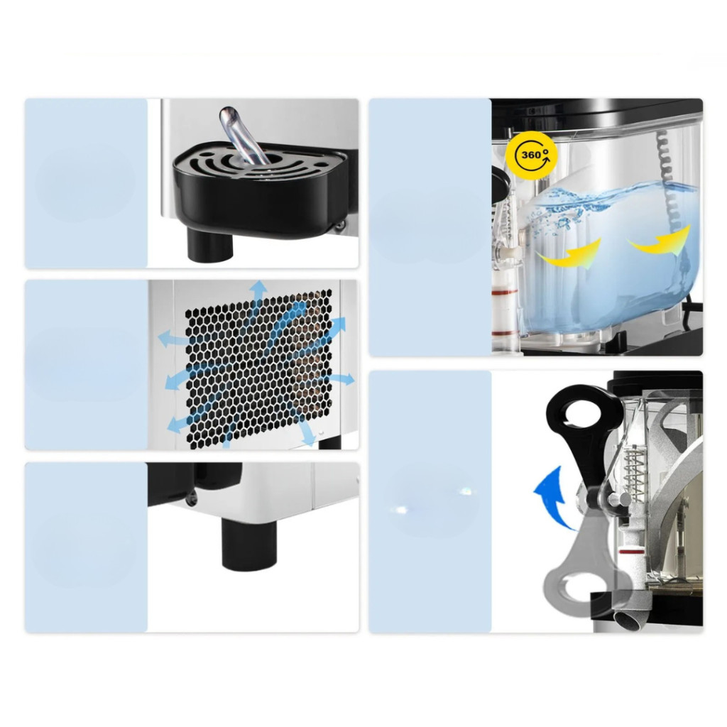 A 6 literes tartályból egy feltöltéssel akár 25 pohár jégkása készíthető, legyen szó klasszikus ízekről vagy kreatív, színes italokról. Tökéletes választás kisebb vendéglátóhelyeknek, rendezvényeknek vagy akár kempingezéshez.