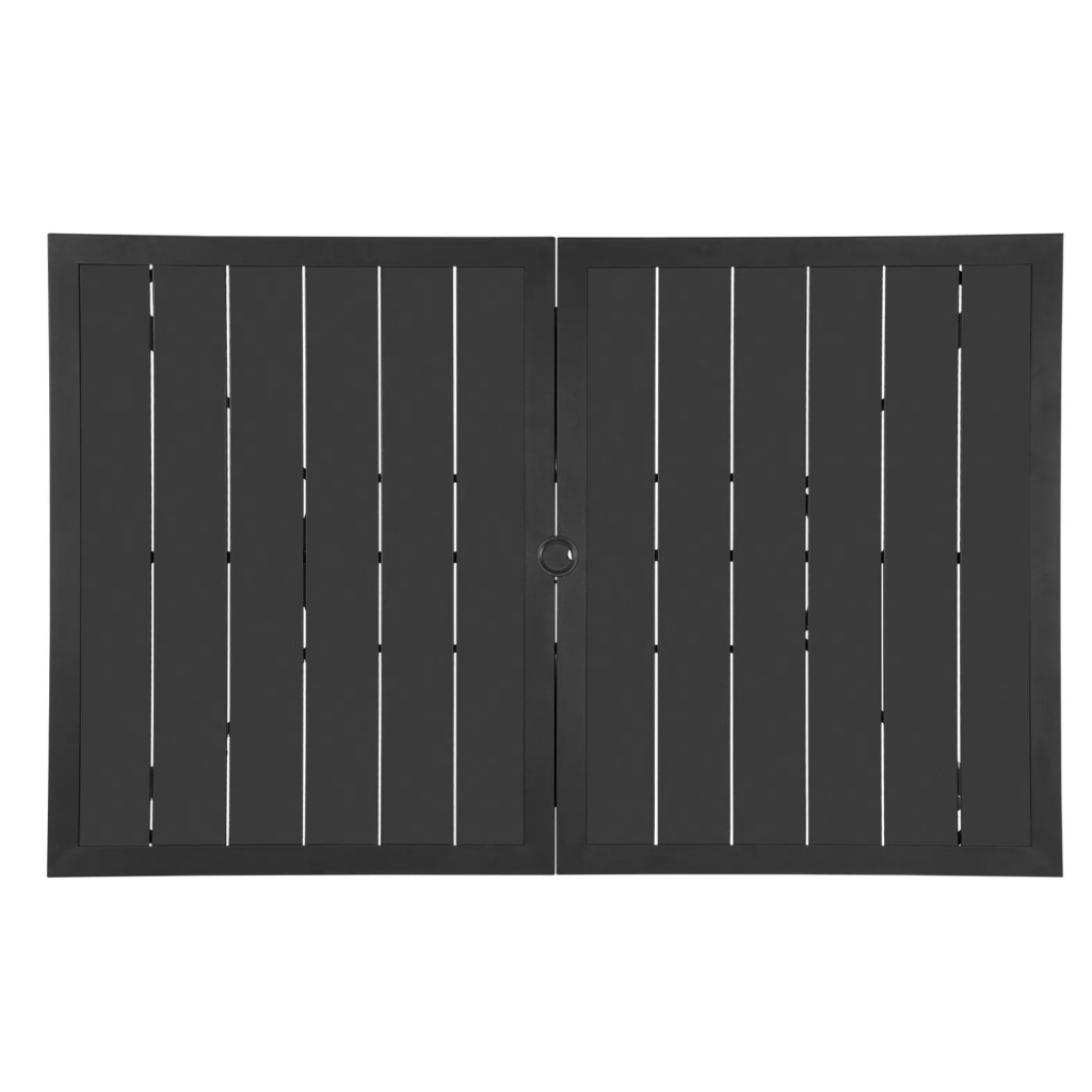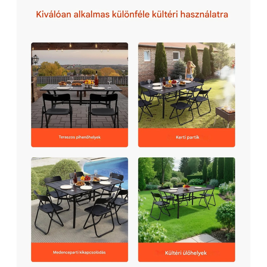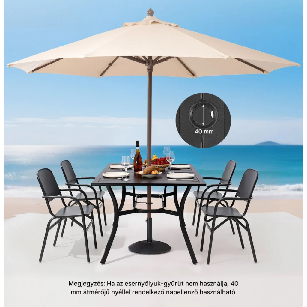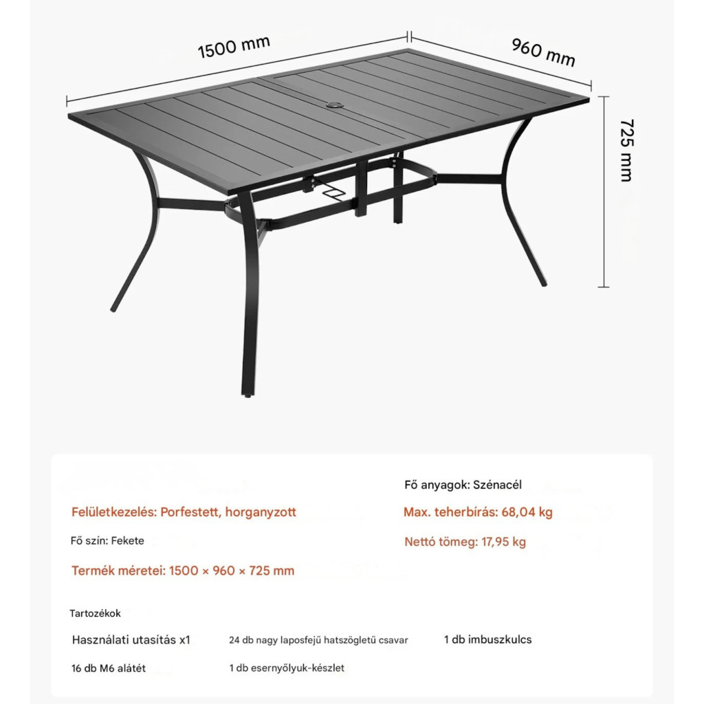 Kerti asztal 1500x960x725 mm téglalap alakú kerti étkezőasztal vízálló napernyő nyílással 68 kg teherbírás fekete