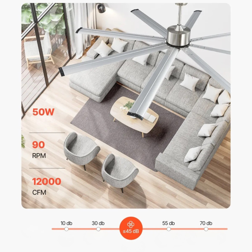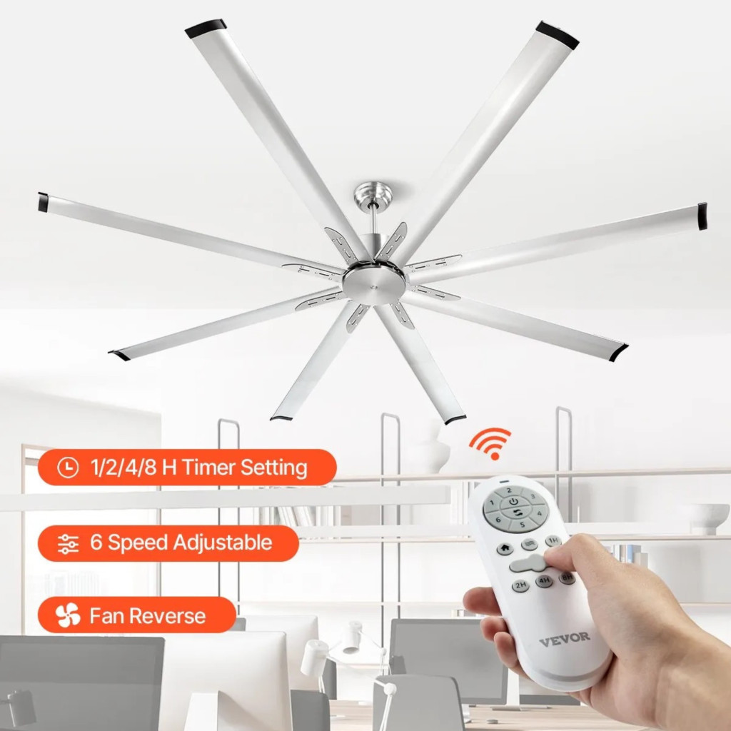 Mennyezeti ventilátor 214 cm világítás nélkül elegáns szálcsiszolt nikkel kivitel, nagy teljesítmény
