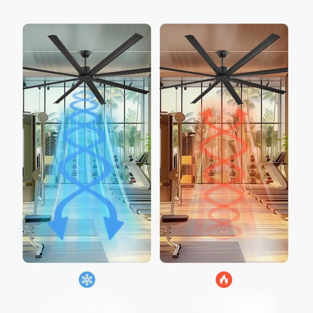 Mert a nagyméretű mennyezeti ventilátor, a csendes DC motor, a négyévszakos használhatóság és a modern fekete design együttese kompromisszummentes megoldást kínál nagy terek hűtésére és levegőmozgatására.