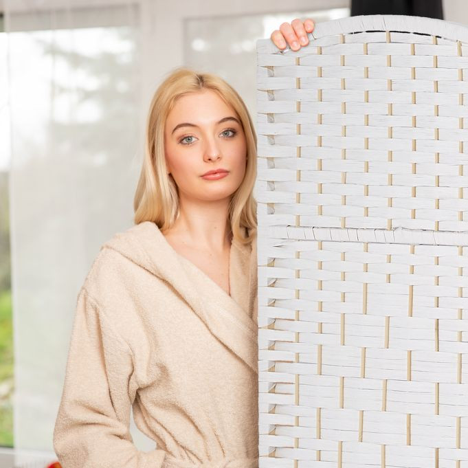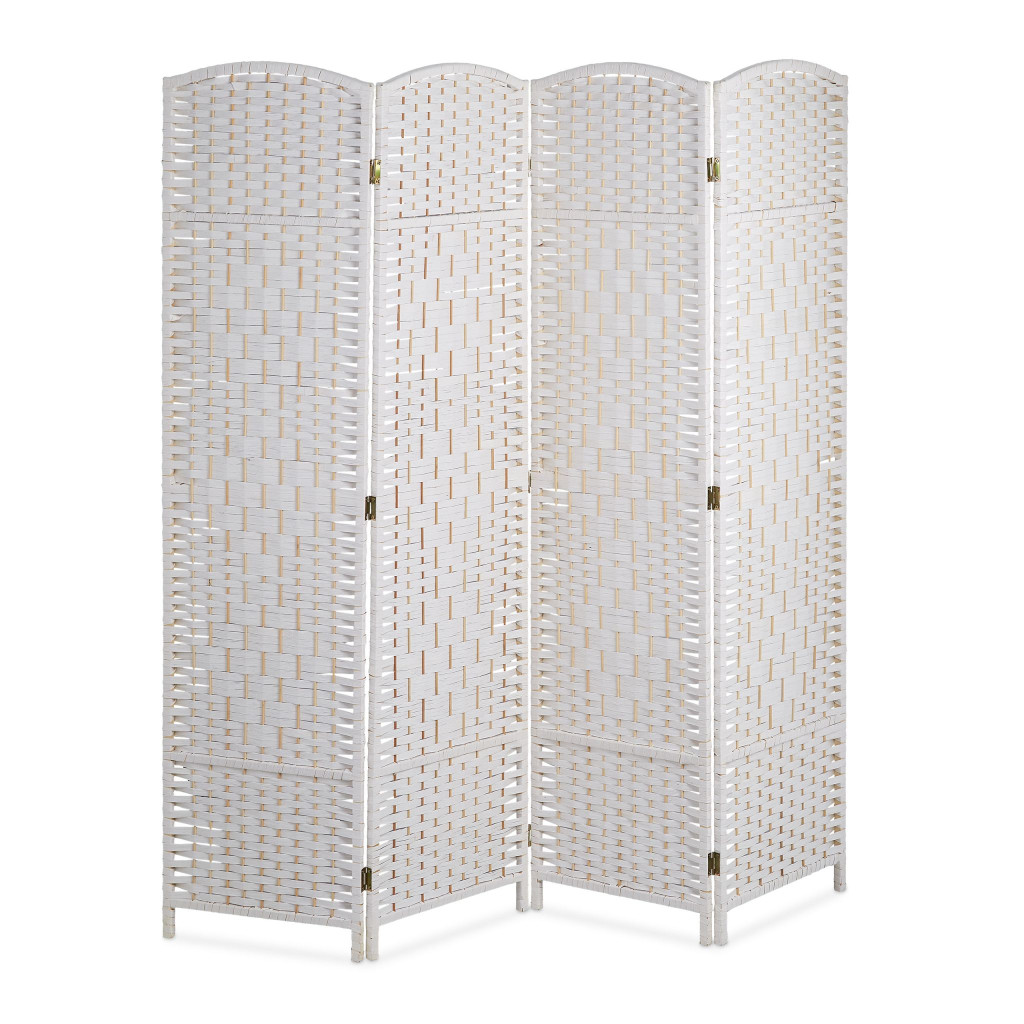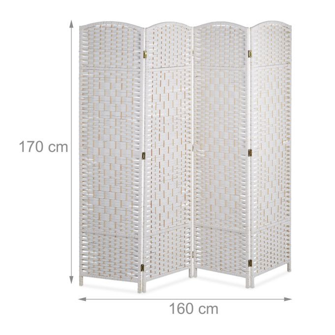 Összecsukható spanyol fal fonott designnal 170x160 cm 4 részes fehér paraván