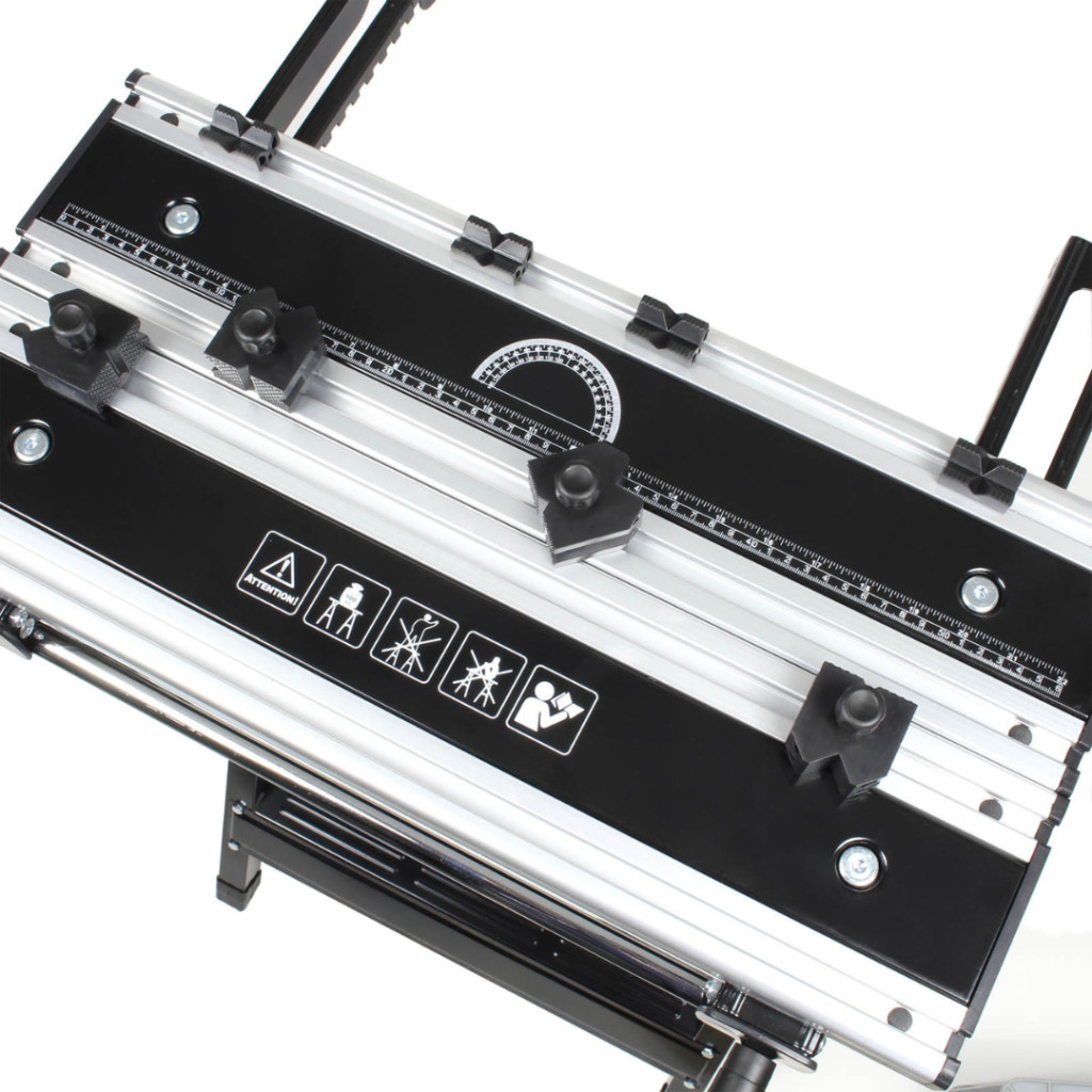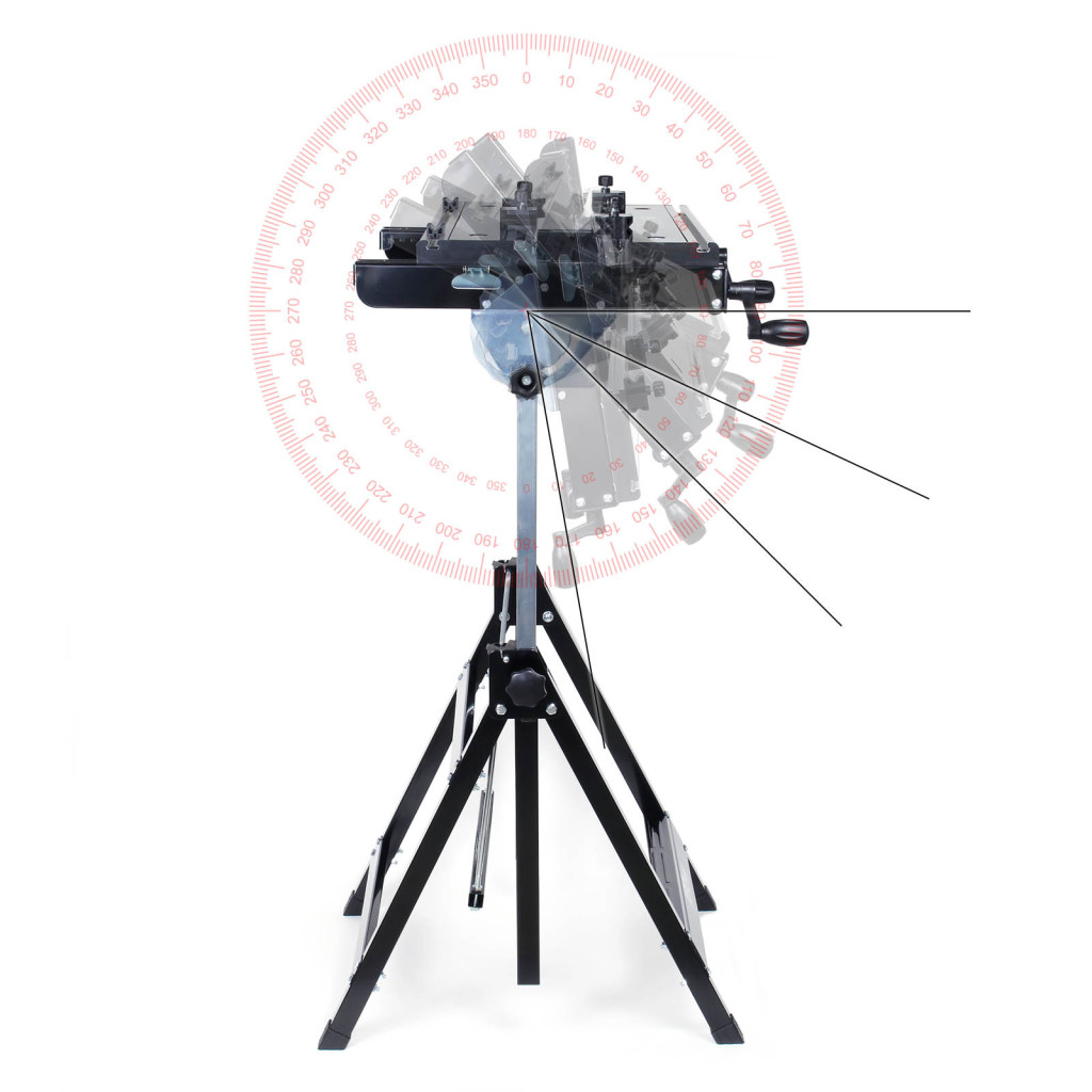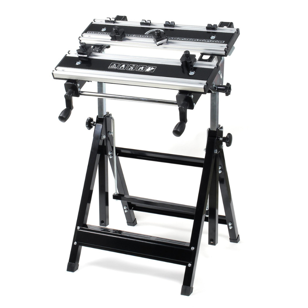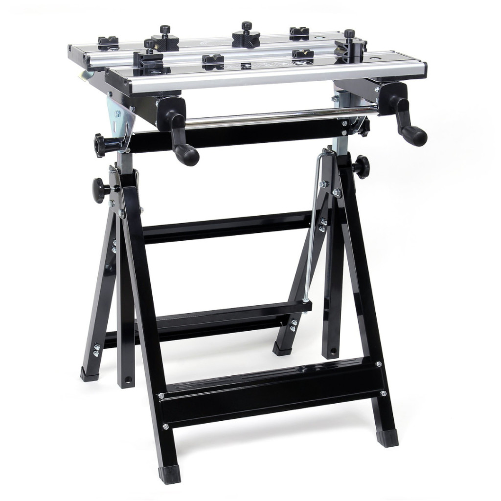 A munkapad 7 fokozatban állítható magassága lehetővé teszi az ergonomikus munkavégzést 77 és 107 cm között, míg a dőlésszög több pozícióban is beállítható (0°, 25°, 45° és 80°). Ennek köszönhetően a pad ideális vágáshoz, fúráshoz, csiszoláshoz vagy szerelési munkákhoz egyaránt.