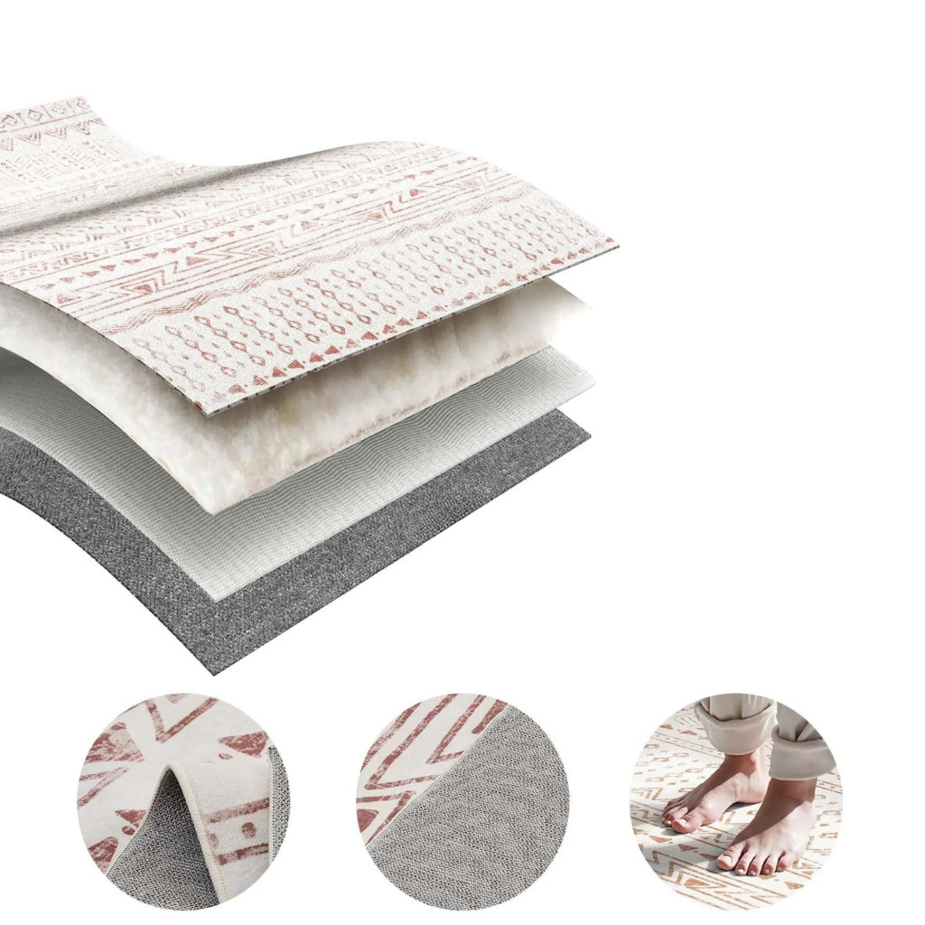 A csúszásmentes TPR hátoldal stabil tapadást biztosít laminált padlón, járólapon vagy parkettán is, csökkentve az elcsúszás kockázatát. A szegélyek laposan felfekszenek, nem pöndörödnek fel.