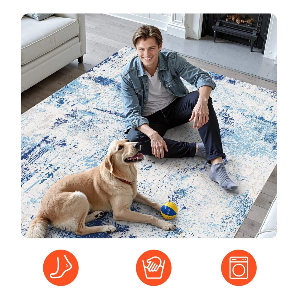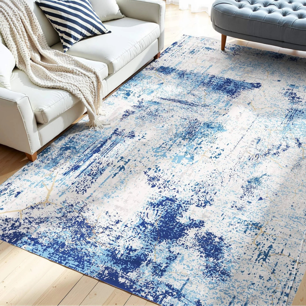 Modern rövid szálú szőnyeg 152x213 cm mosható, csúszásmentes nappali szőnyeg kék színben