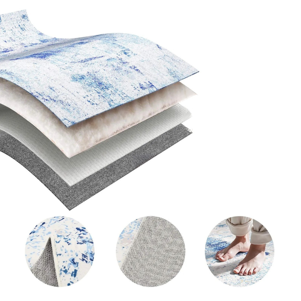 A szőnyeg bársonyos tapintású, rövid szálú felülete kellemes érzetet biztosít mezítláb is. A sűrű szövésű, hipoallergén anyagszerkezet csökkenti a por és szösz felhalmozódását, így ideális választás érzékenyebb bőrűek, gyermekek vagy háziállatot tartók számára is.