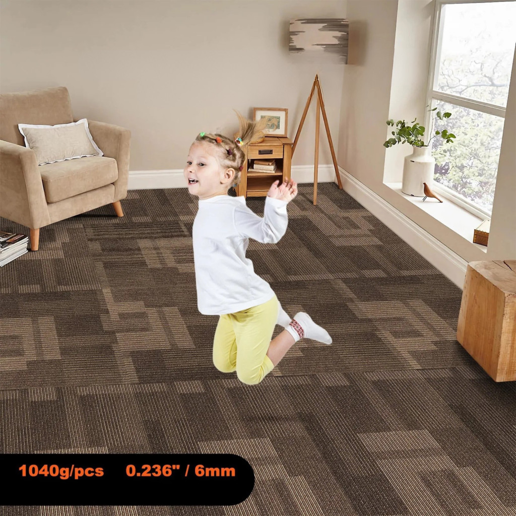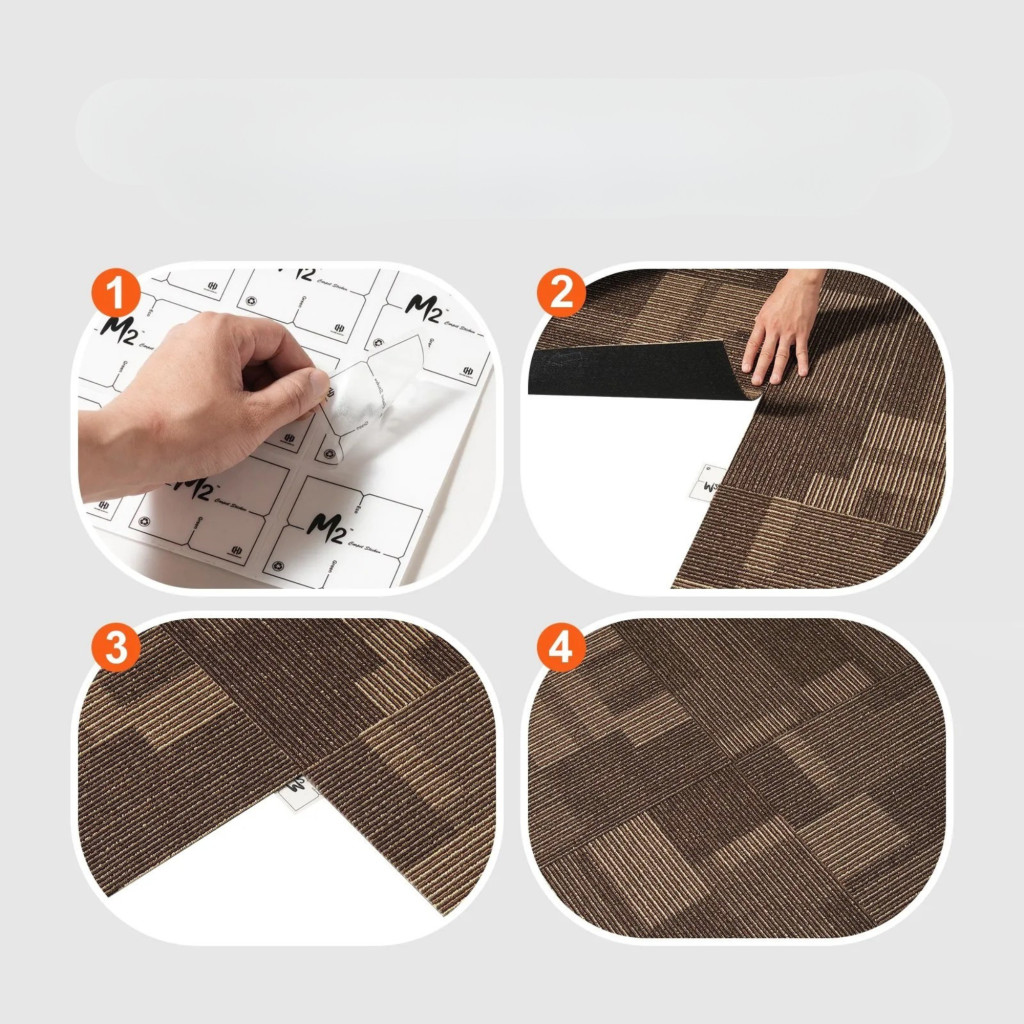 Moduláris padlószőnyeg 610x610 mm, puha alátéttel, ragasztás nélküli telepítés, 24 db kevert barna árnyalat
