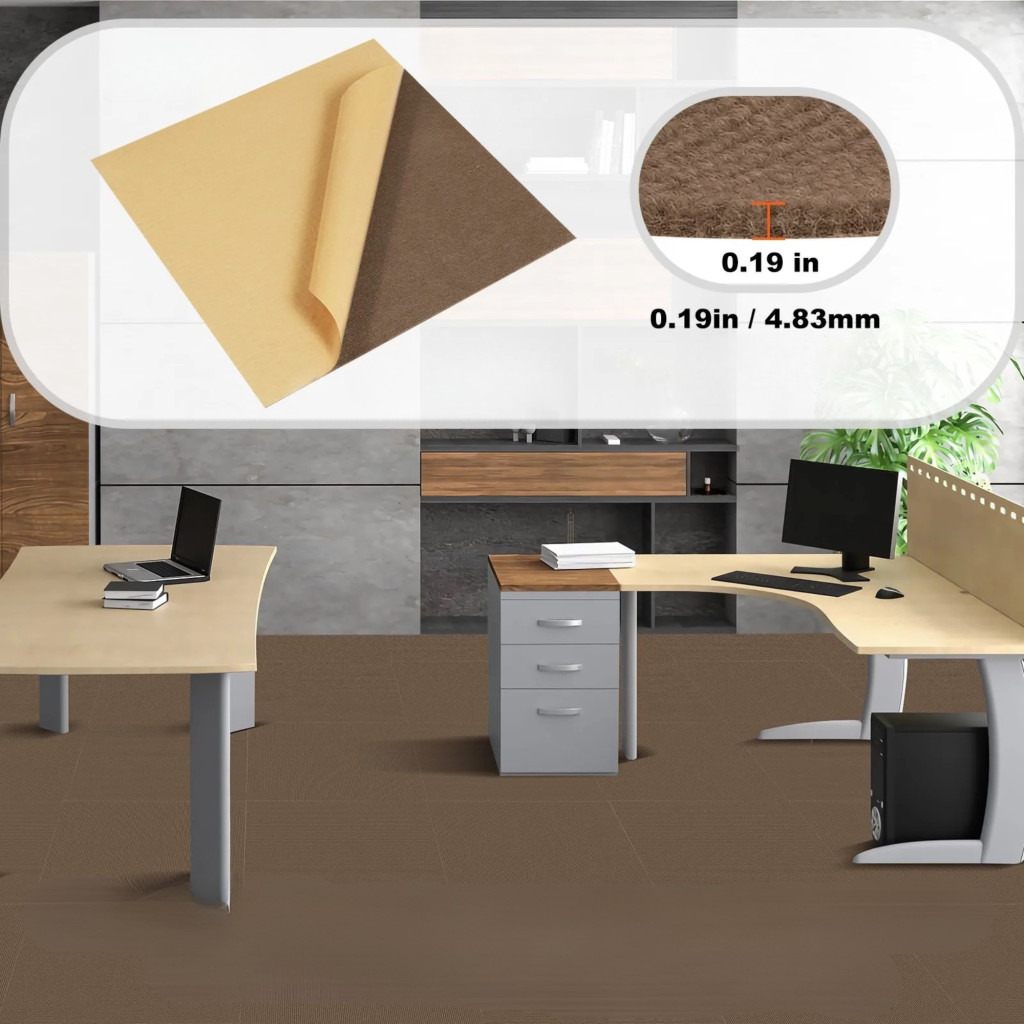 Az öntapadós padlószőnyeg elemek ideális megoldást nyújtanak, ha gyorsan, tisztán és szakember nélkül szeretné megújítani otthona padlófelületét. A készlet 10 darab, egyenként 457×457 mm-es padlószőnyeg elemet tartalmaz, amelyek együtt kb. 2,1 m² területet fednek le. A sötétbarna árnyalat elegáns, meleg hangulatot teremt, miközben kiválóan illeszkedik modern és klasszikus enteriőrökhöz egyaránt.