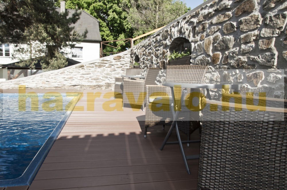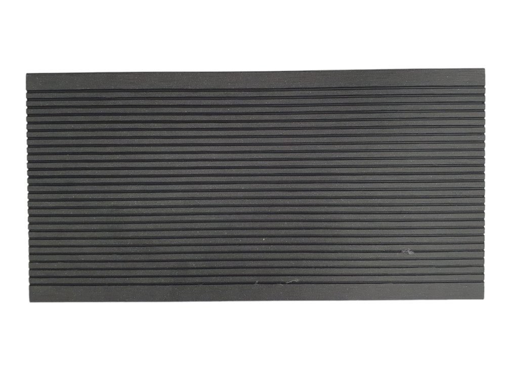 WPC padlólap 4 méteres szál 145x21x4000 mm Fahatású kétoldalas sötétszürke antracit fekete színű burkolat. Woodlook Premium, csúszásmentes felület. Méterenkénti ár!