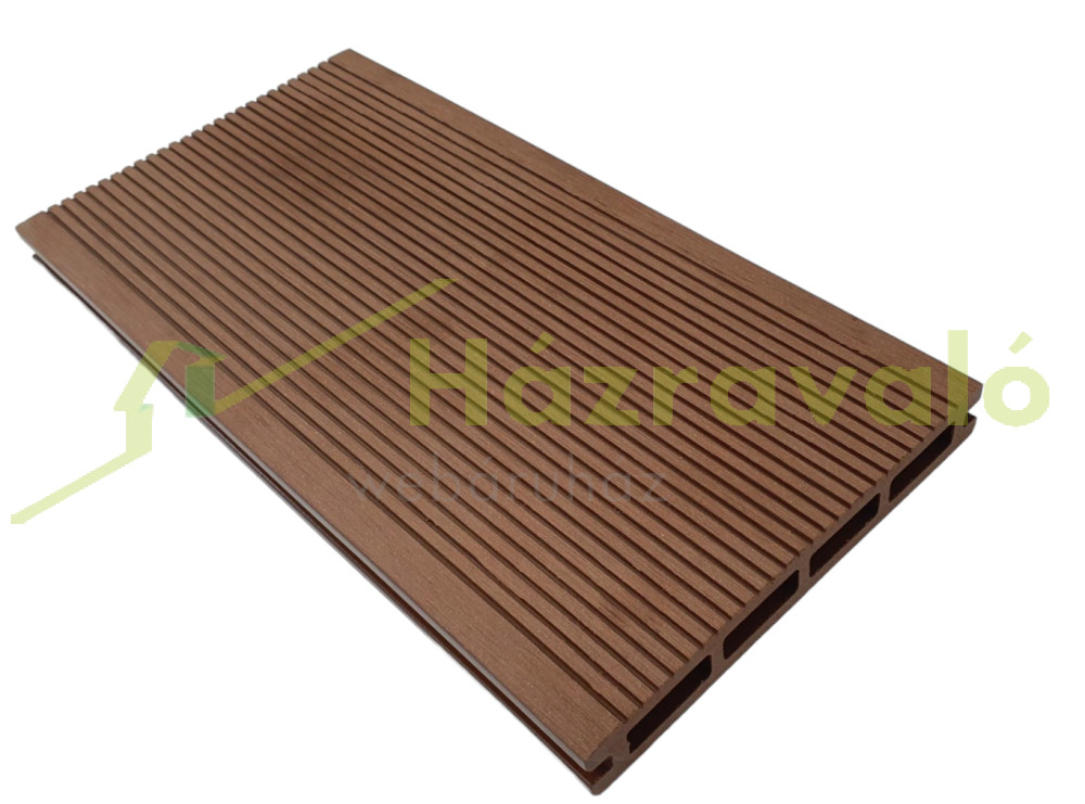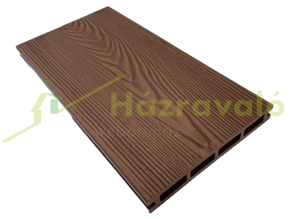 WPC padlólap méterár 145x21x4000 mm Fahatású kétoldalas barna Merbau burkolat. Woodlook Premium csúszásmentes felület.