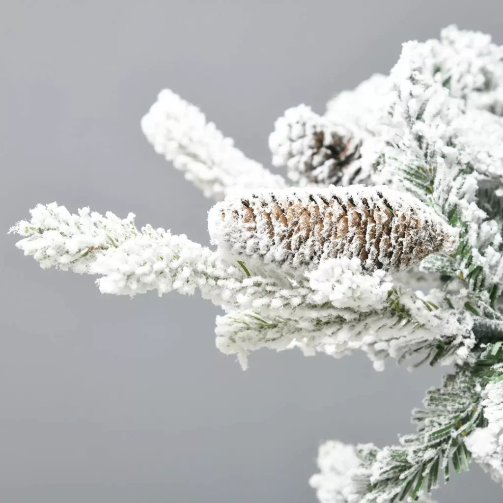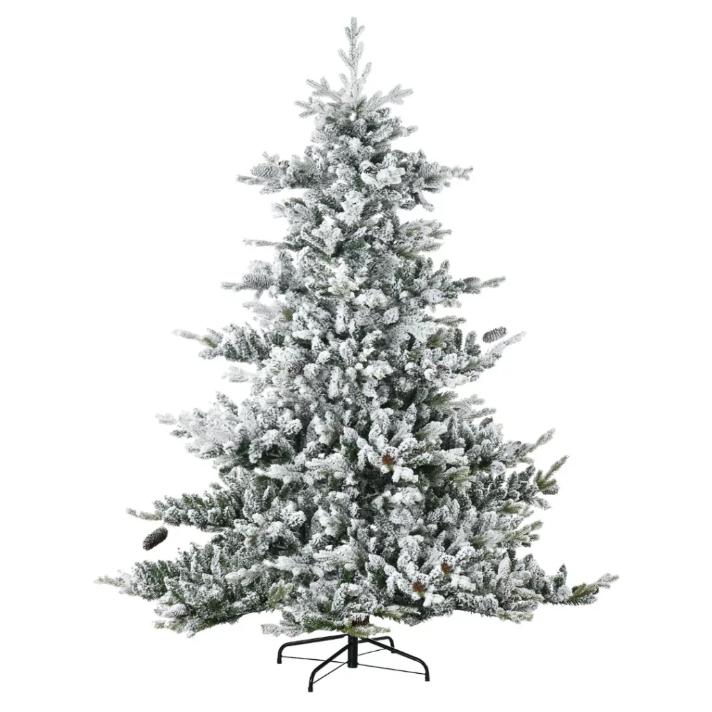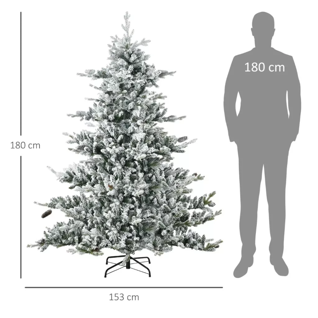 Műfenyő 180 cm havas hatású karácsonyfa dús koronával, élethű megjelenéssel, tobozokkal díszítve