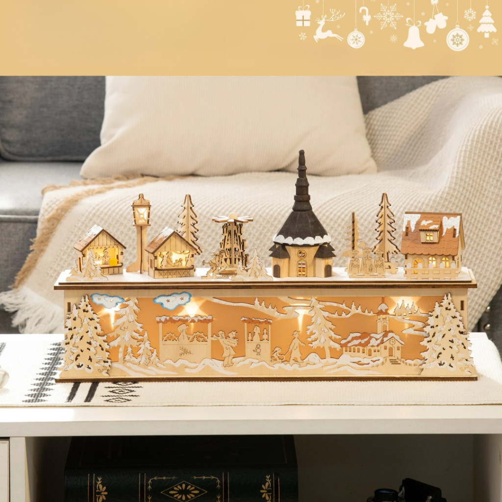 • 1 db fa karácsonyi falu LED-világítással (45 cm)