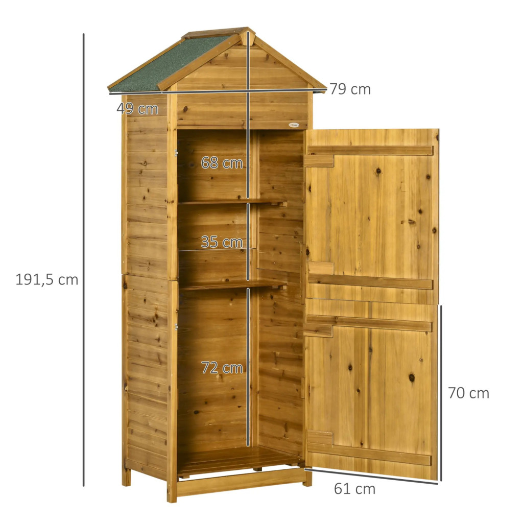 Kerti szerszámtároló szekrény 79x49x190 cm fa kerti tároló ház polcokkal