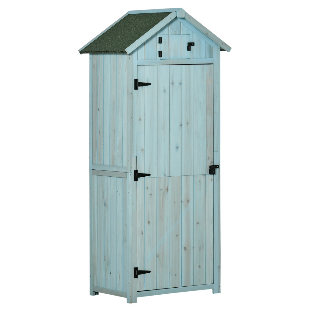 Kerti fészer 77x54,2x179 cm időjárásálló szerszámoskamra kerti ház polcos szerszámosszekrény világoskék-zöld