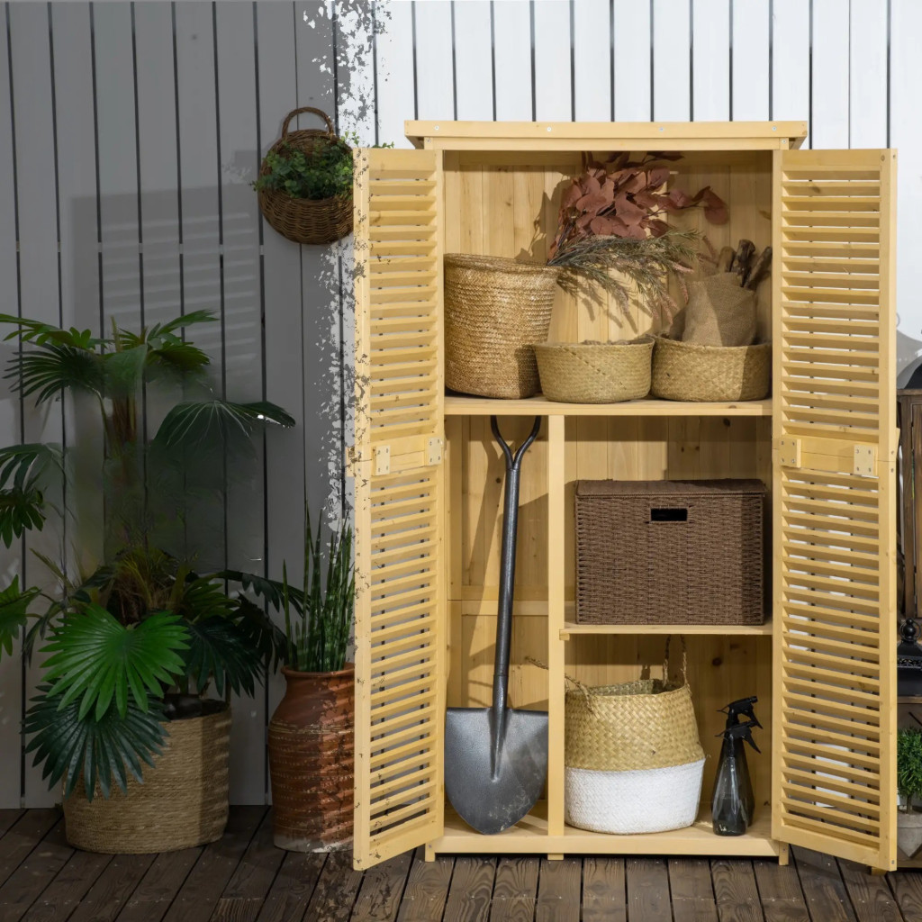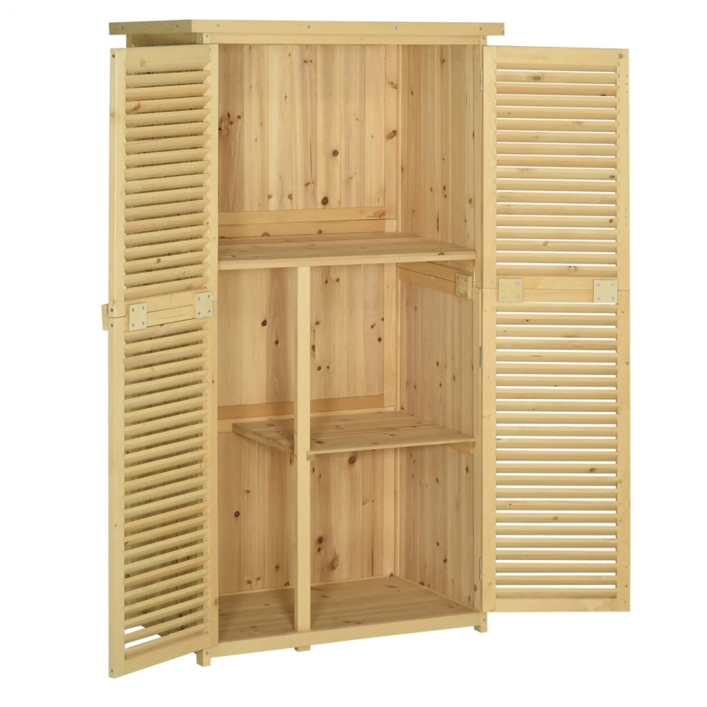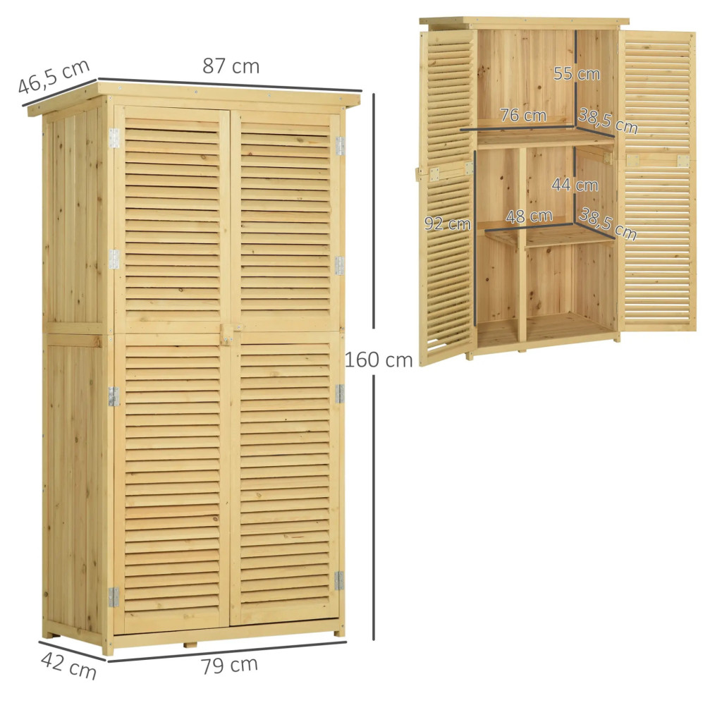 • 160 cm magas fa kerti szerszámtároló szekrény