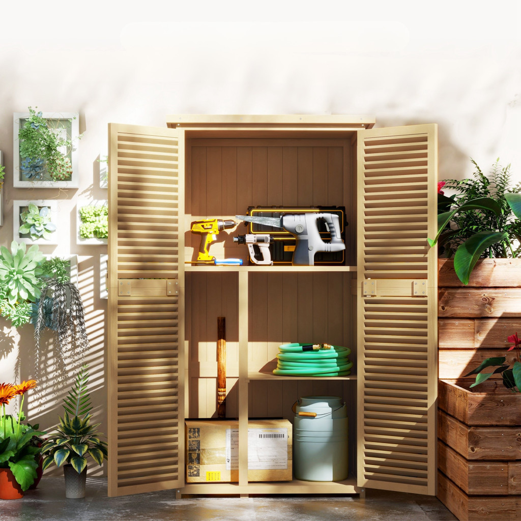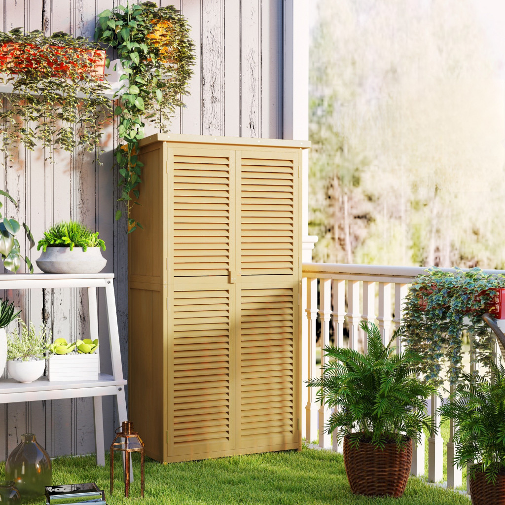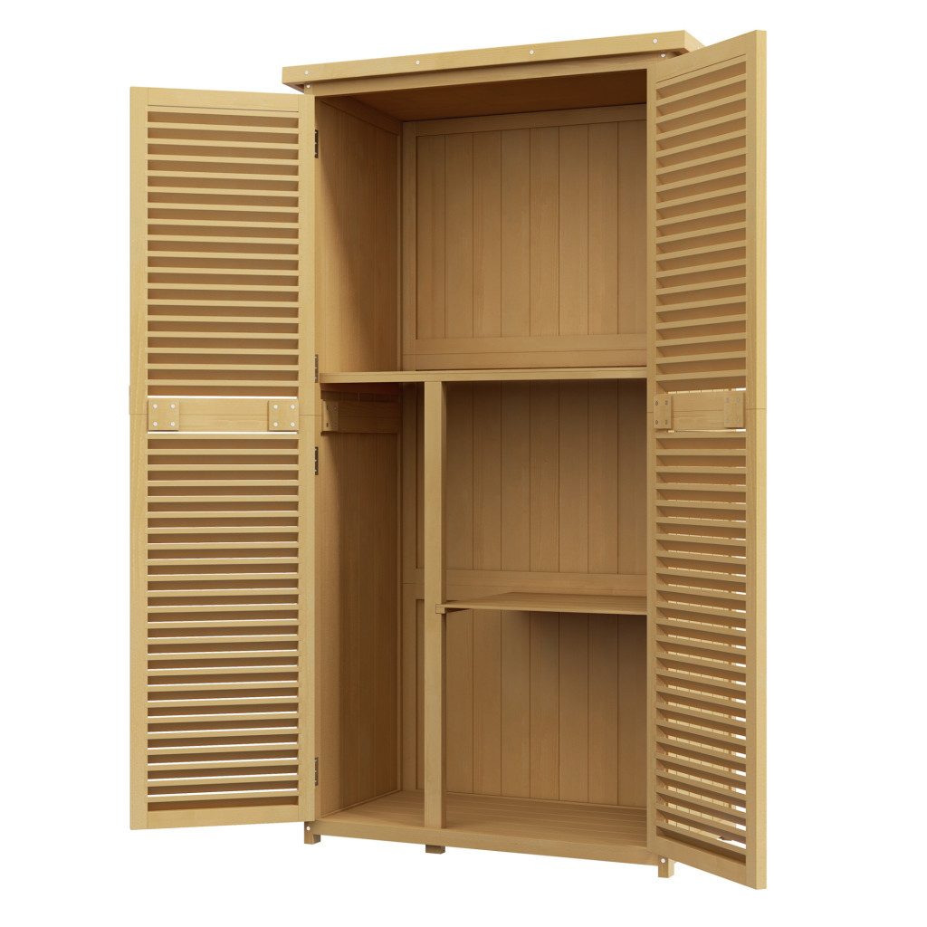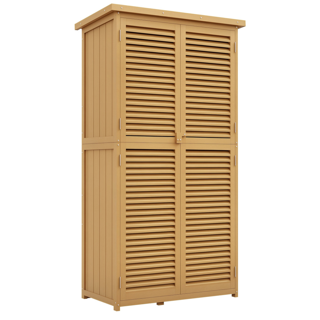 Fa kerti tárolószekrény zárható ajtóval 87x46,5x160 cm magas kerti szerszámos szekrény fenyőfa