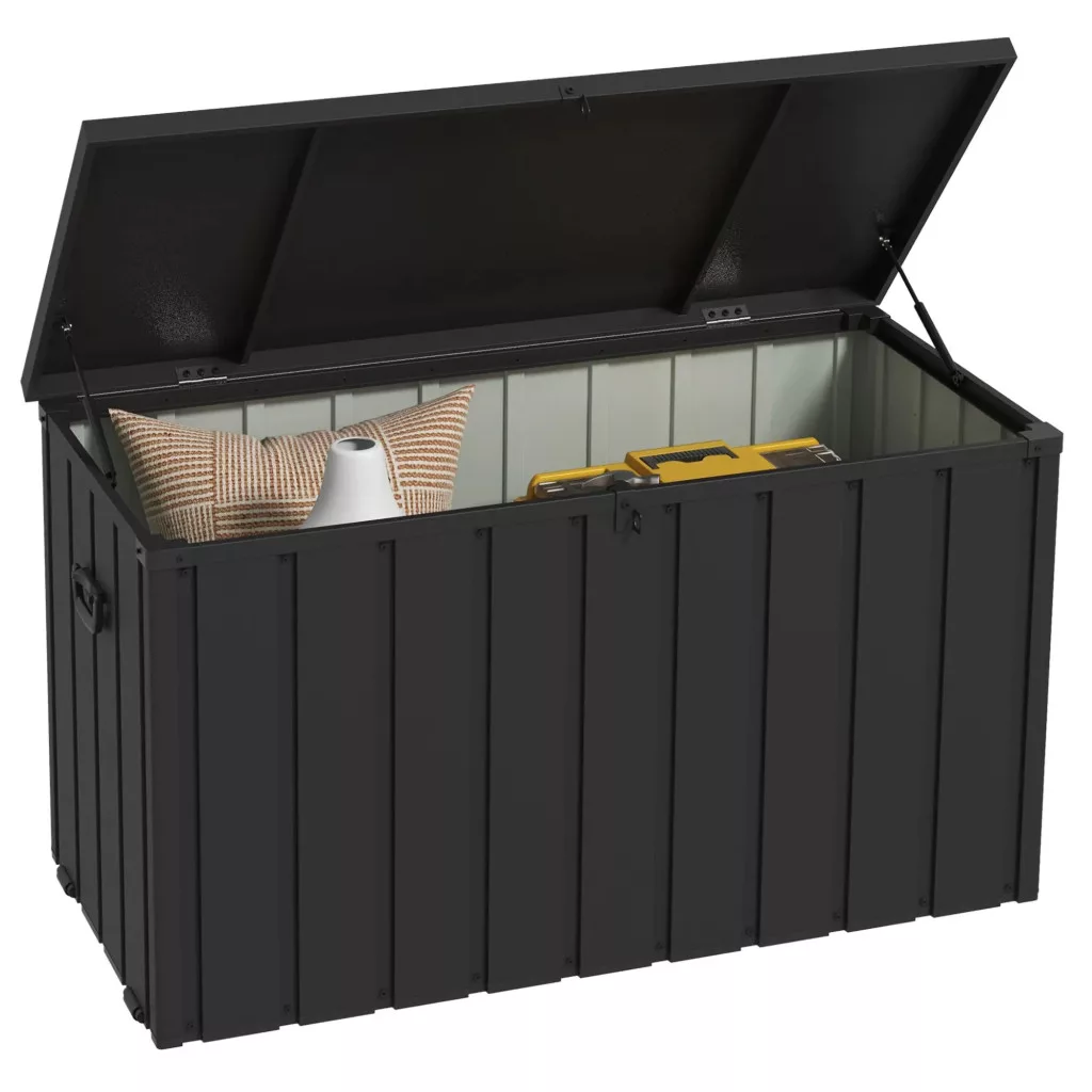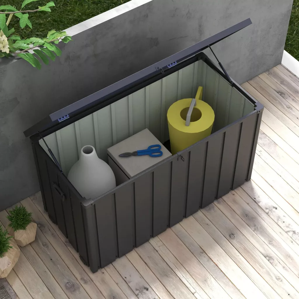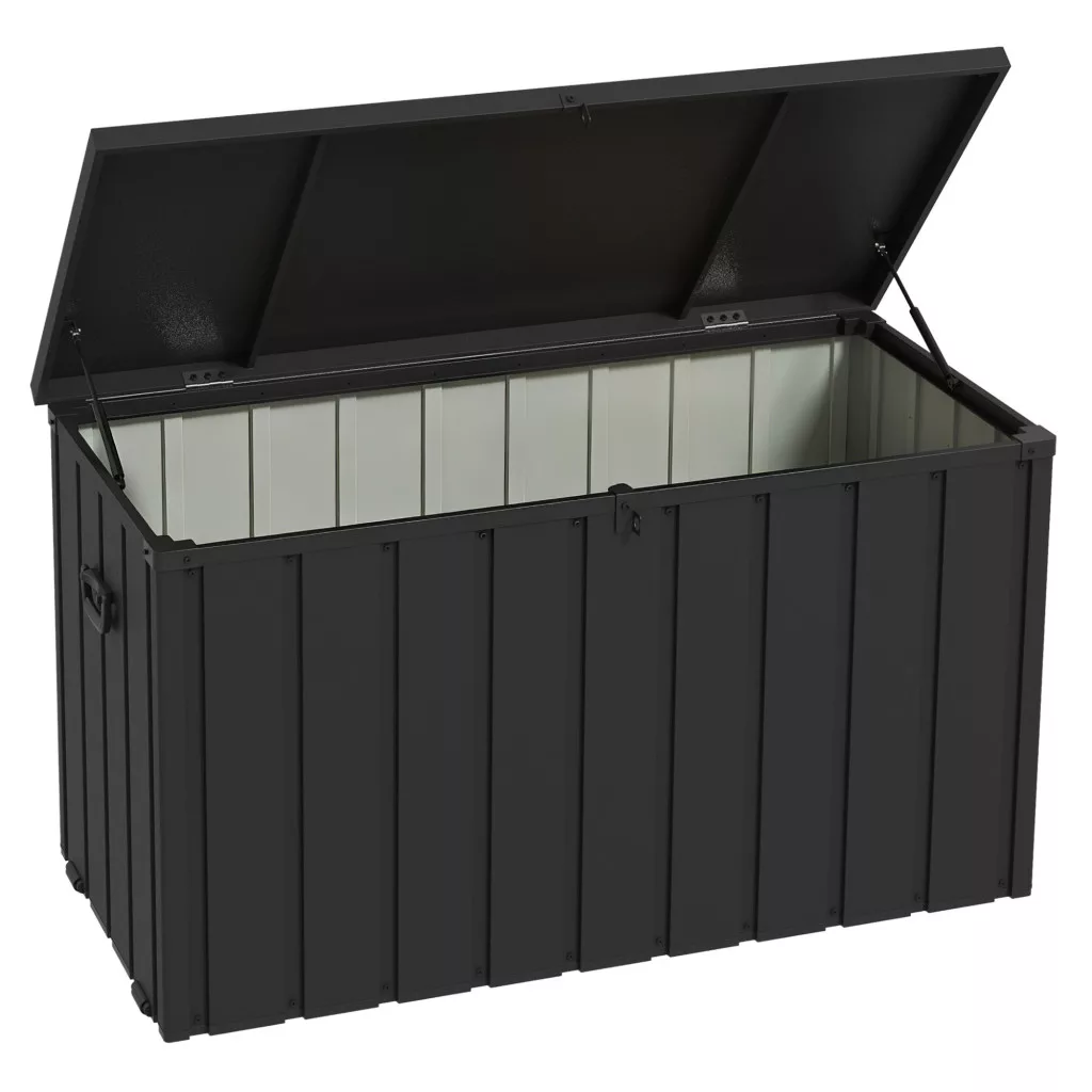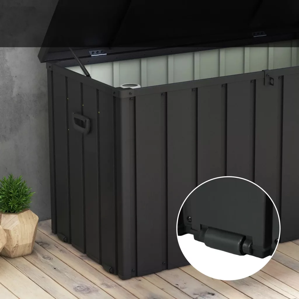 Kerti tároló láda 450L 125x61x70 cm nagyméretű kerti párnatartó tároló doboz sötétszürke