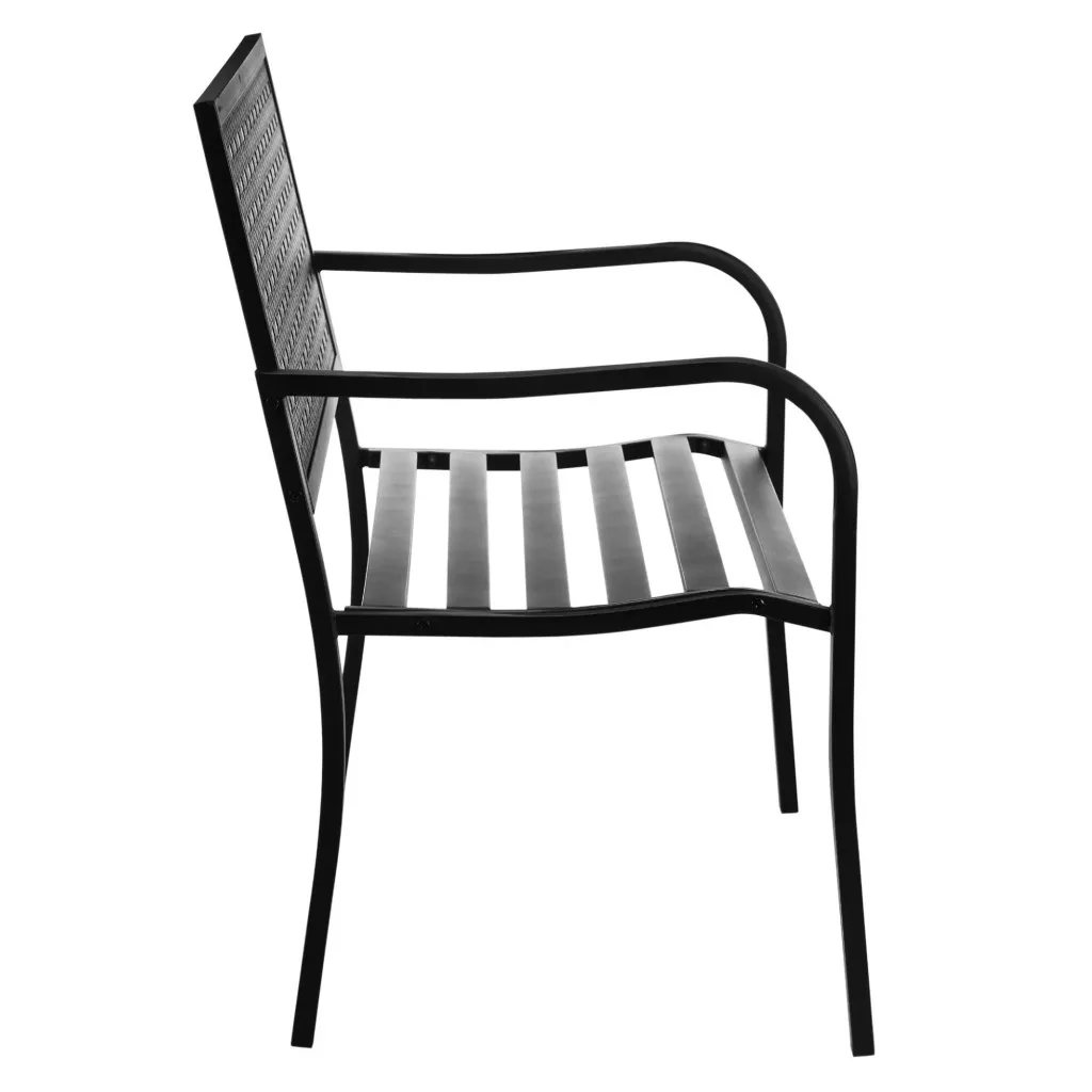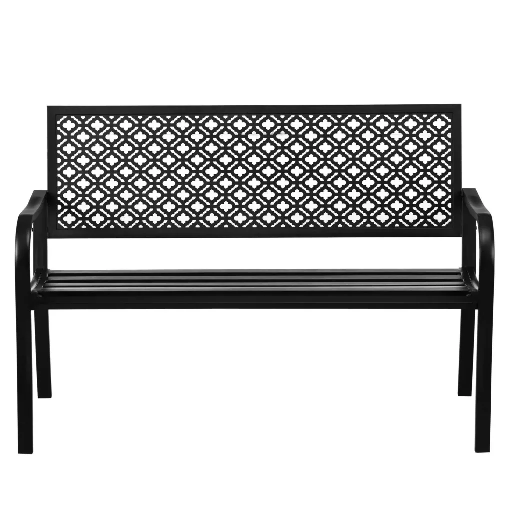 Fém kerti pad 2 személyes kerti pad virágmintás háttámlával időjárásálló acél 127x63x83 cm fekete